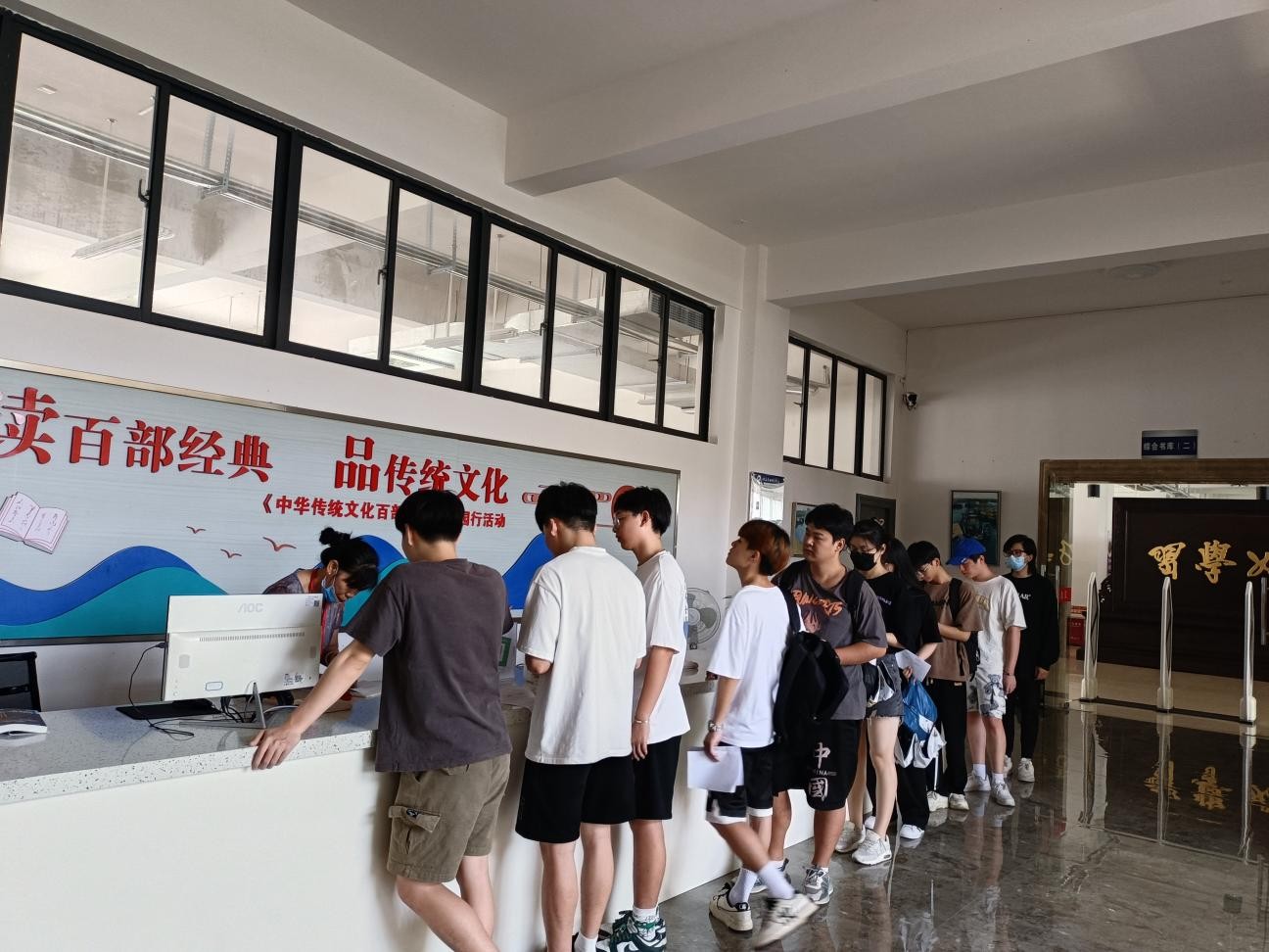 图书馆增派工作人员加班加点为学生 办理离校手续