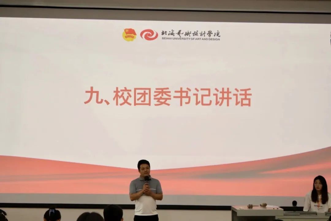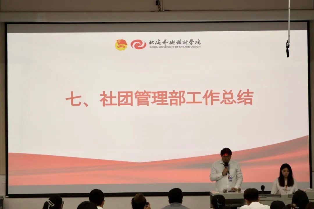 最后,由团委书记唐良春总结讲话。首先他对学生组织本学期开学以来的努力工作表示肯定与赞赏。其次,他也提出了工作汇报存在的问题,最后,他希望各学生代表能够勇于表达自己,汇报时能够展现自己部门特色,同时不断突破自我,让每一位学生代表都能成为北艺的闪光点。