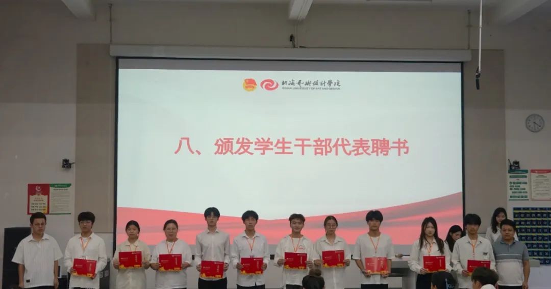 大会第二项议程:颁发学生干部代表聘书。