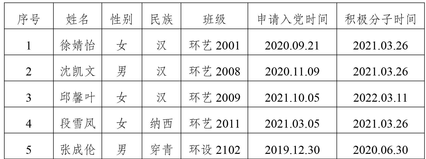 关于拟将徐婧怡等5位同志列为发展对象人选的公示