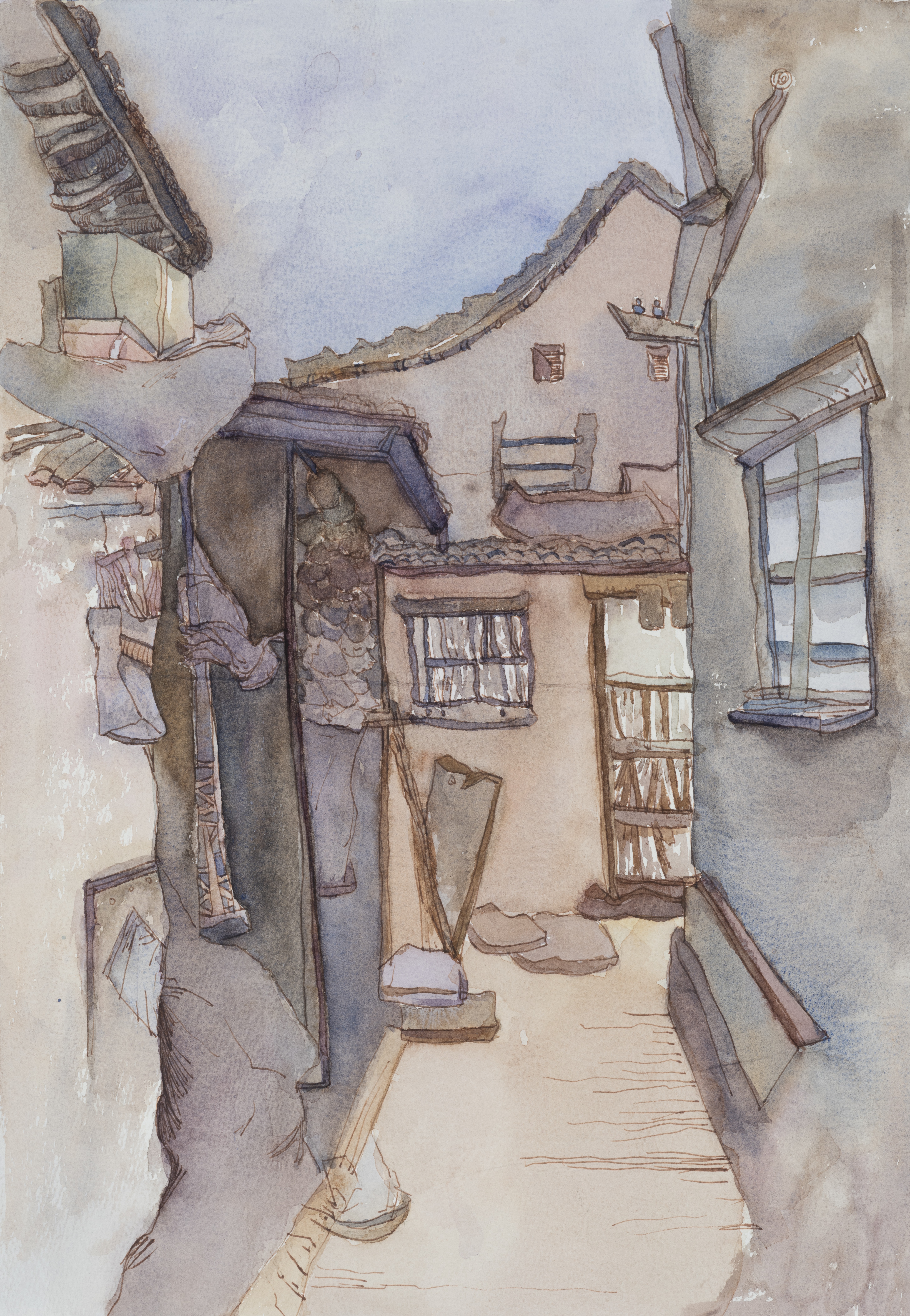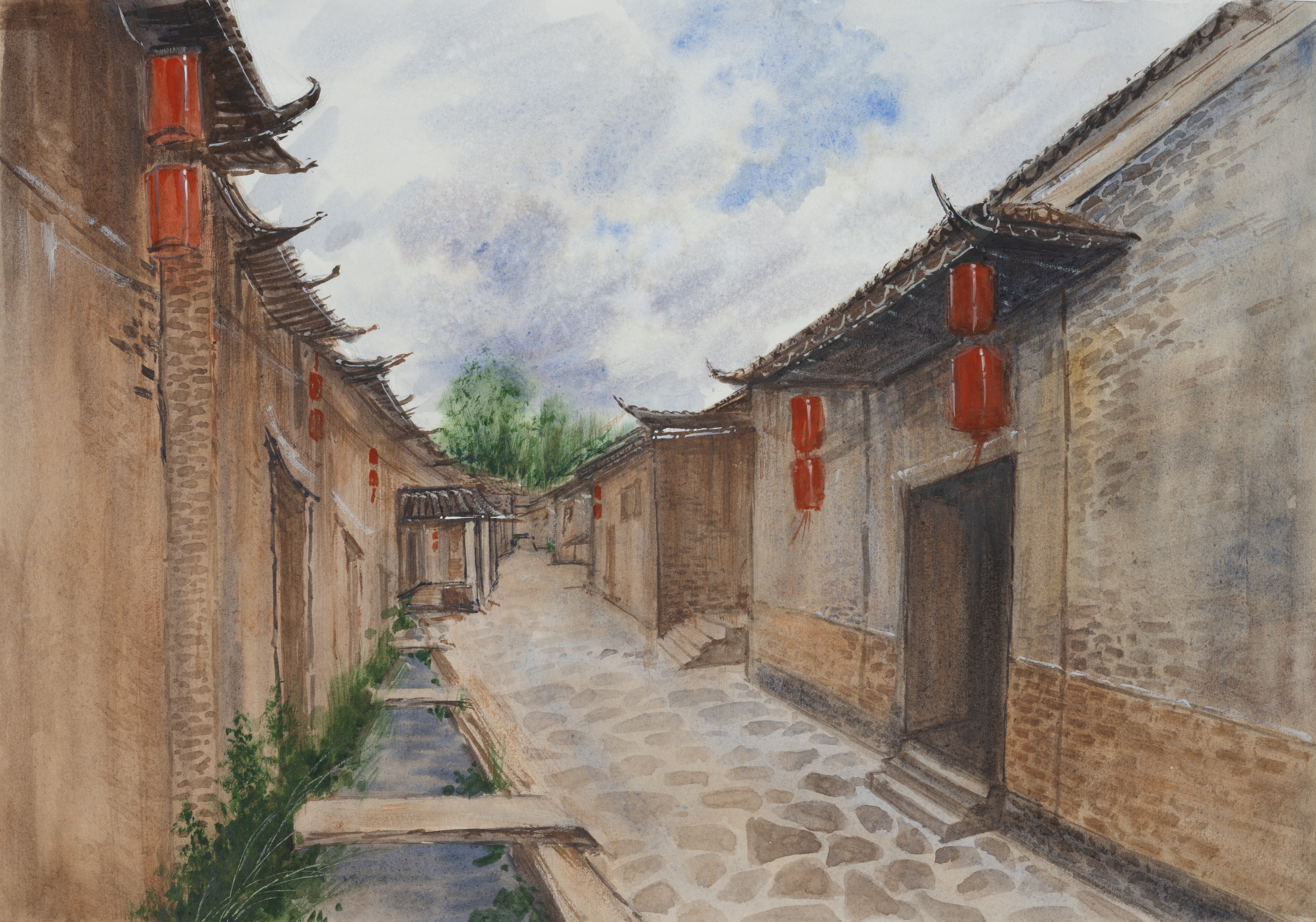李鹏举,美术学专业,《侗寨小巷》,27x39cm,纸本水彩