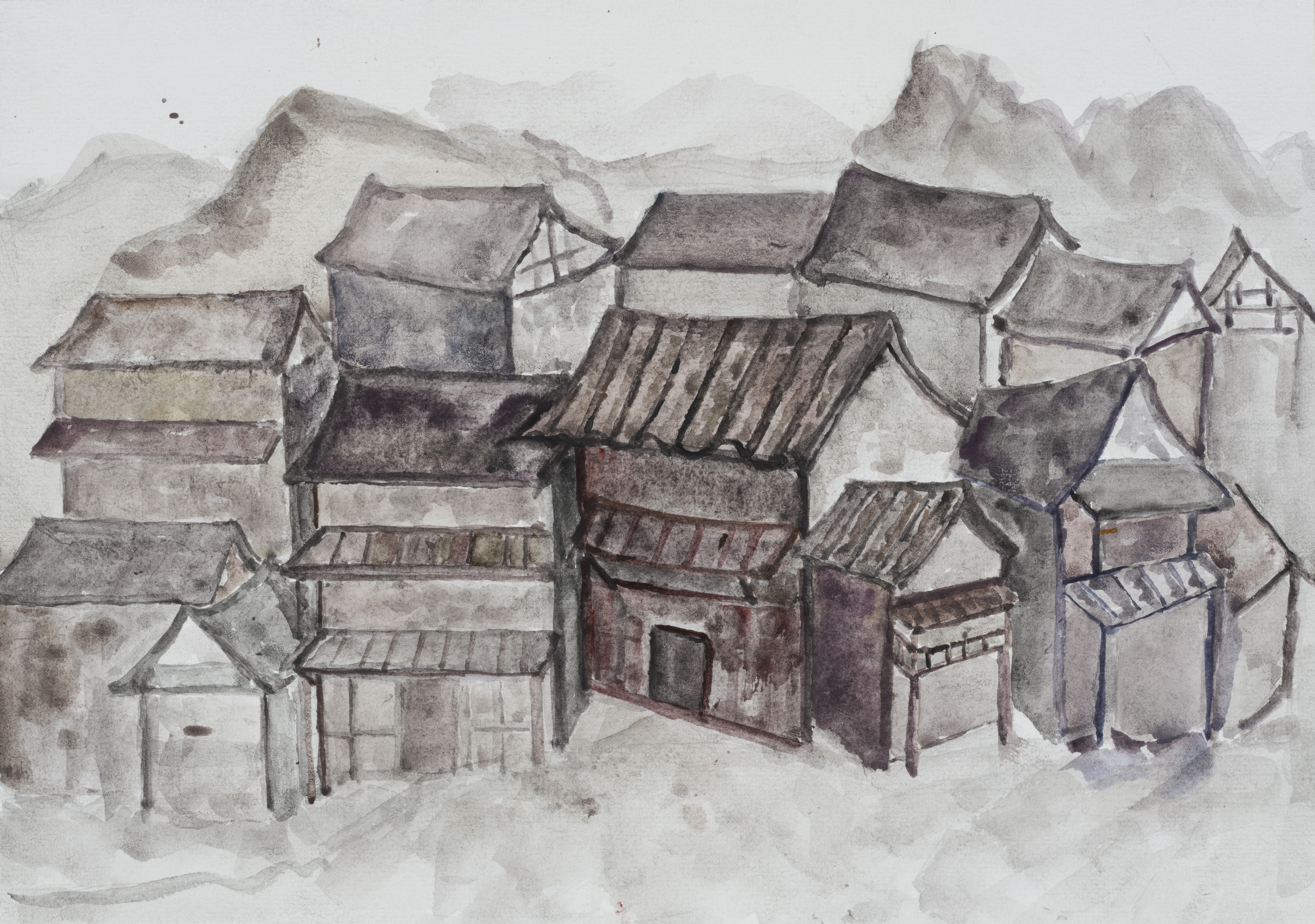雷宇豪,美术学专业,《古镇》,39x54cm,纸本水彩
