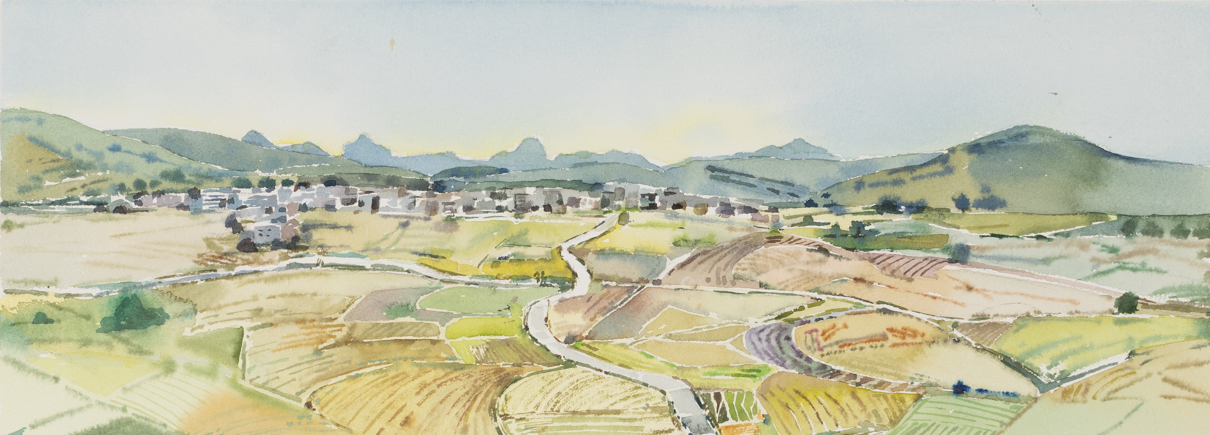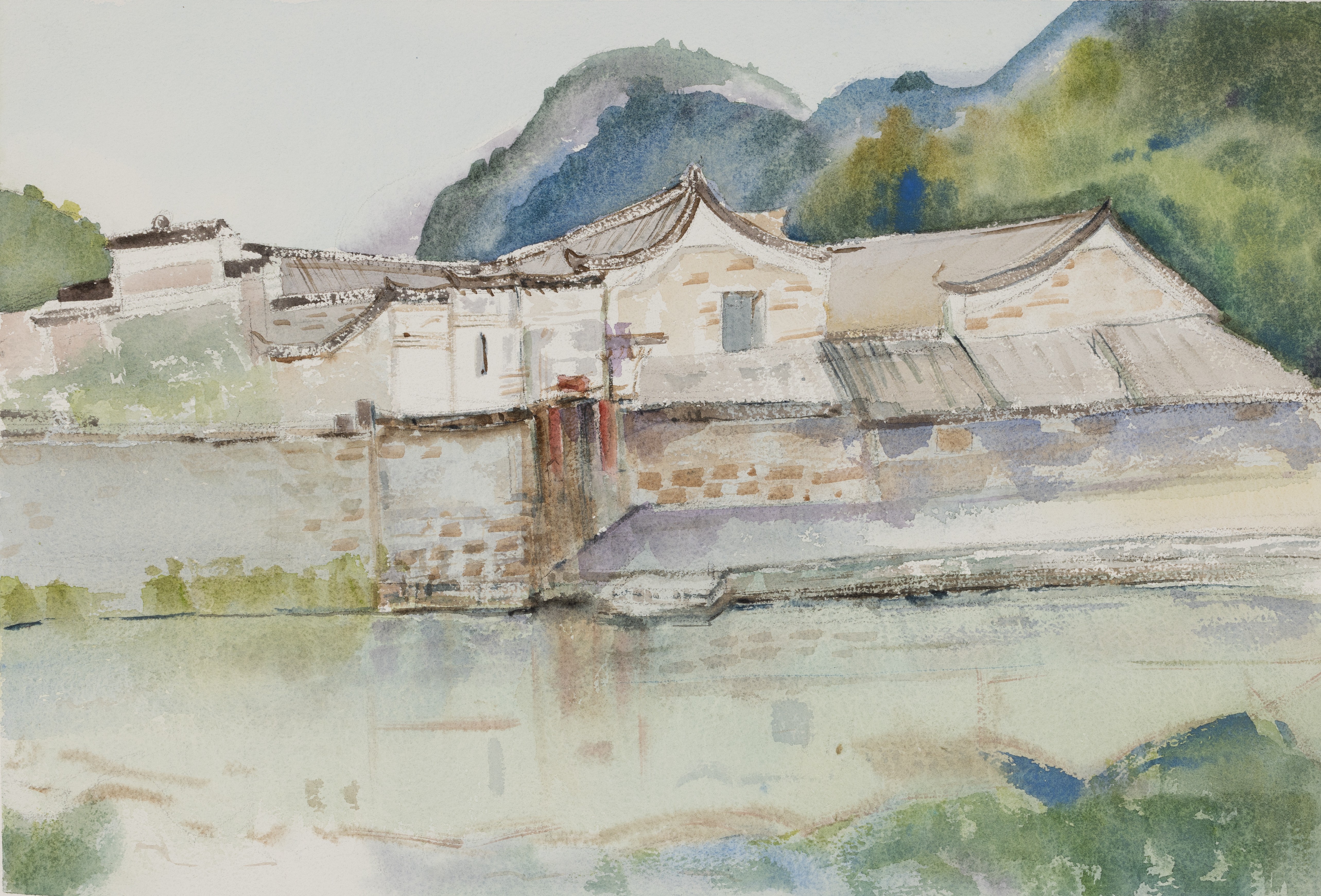 段凝,《状元村印象》,30x50cm,纸本水彩