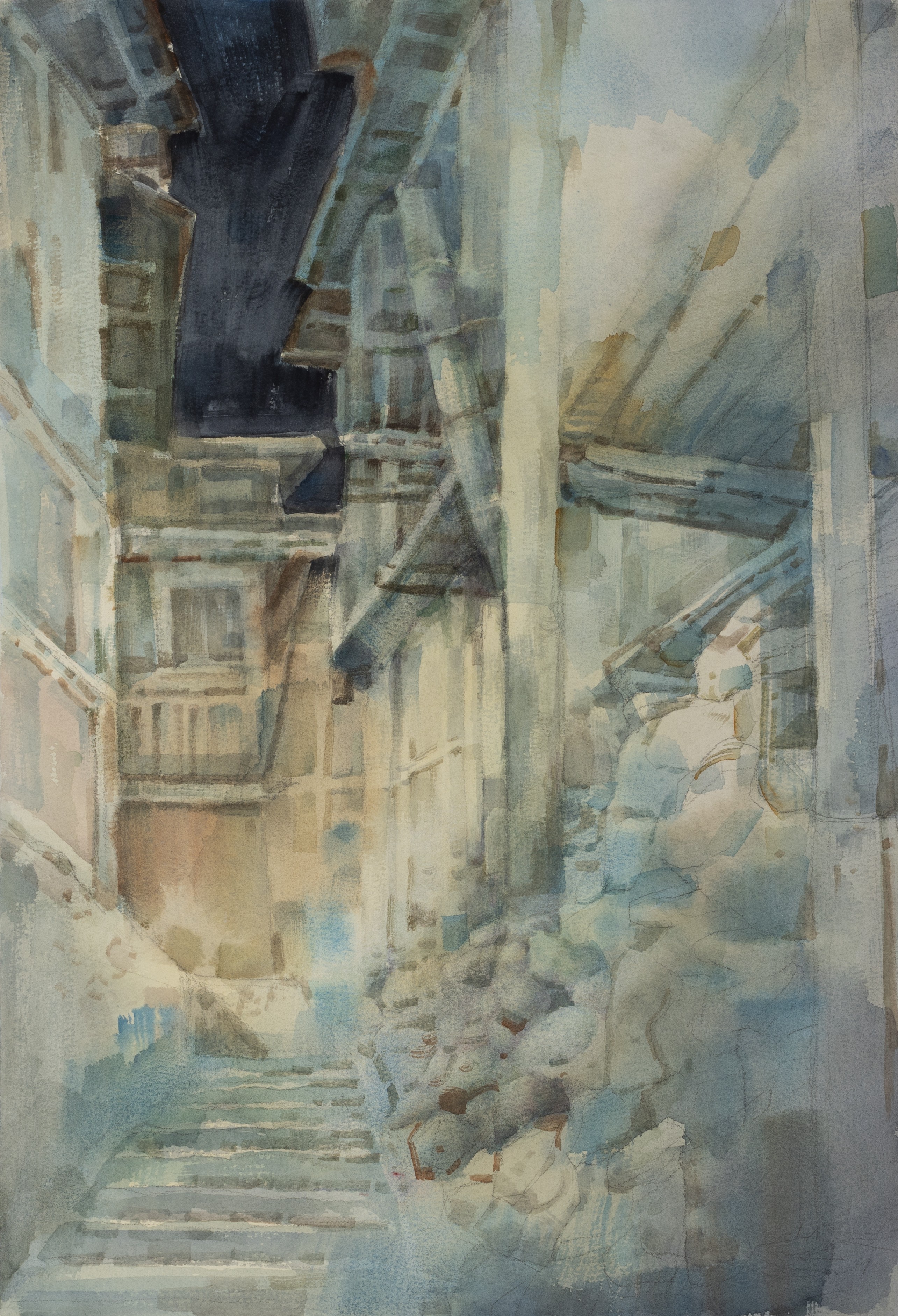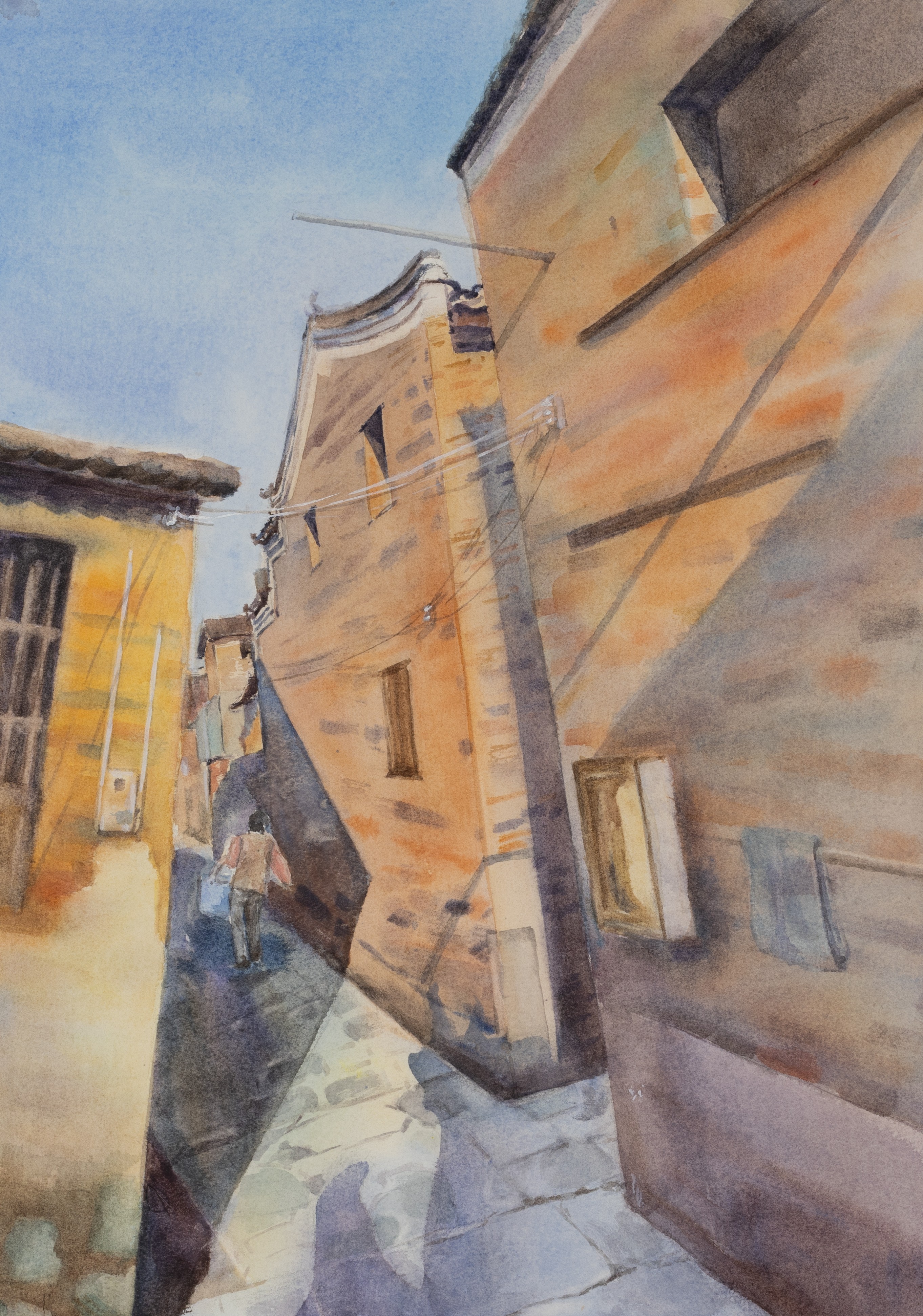 陆雨薇,美术学专业,《小巷阳光》,39x54cm,纸本水彩