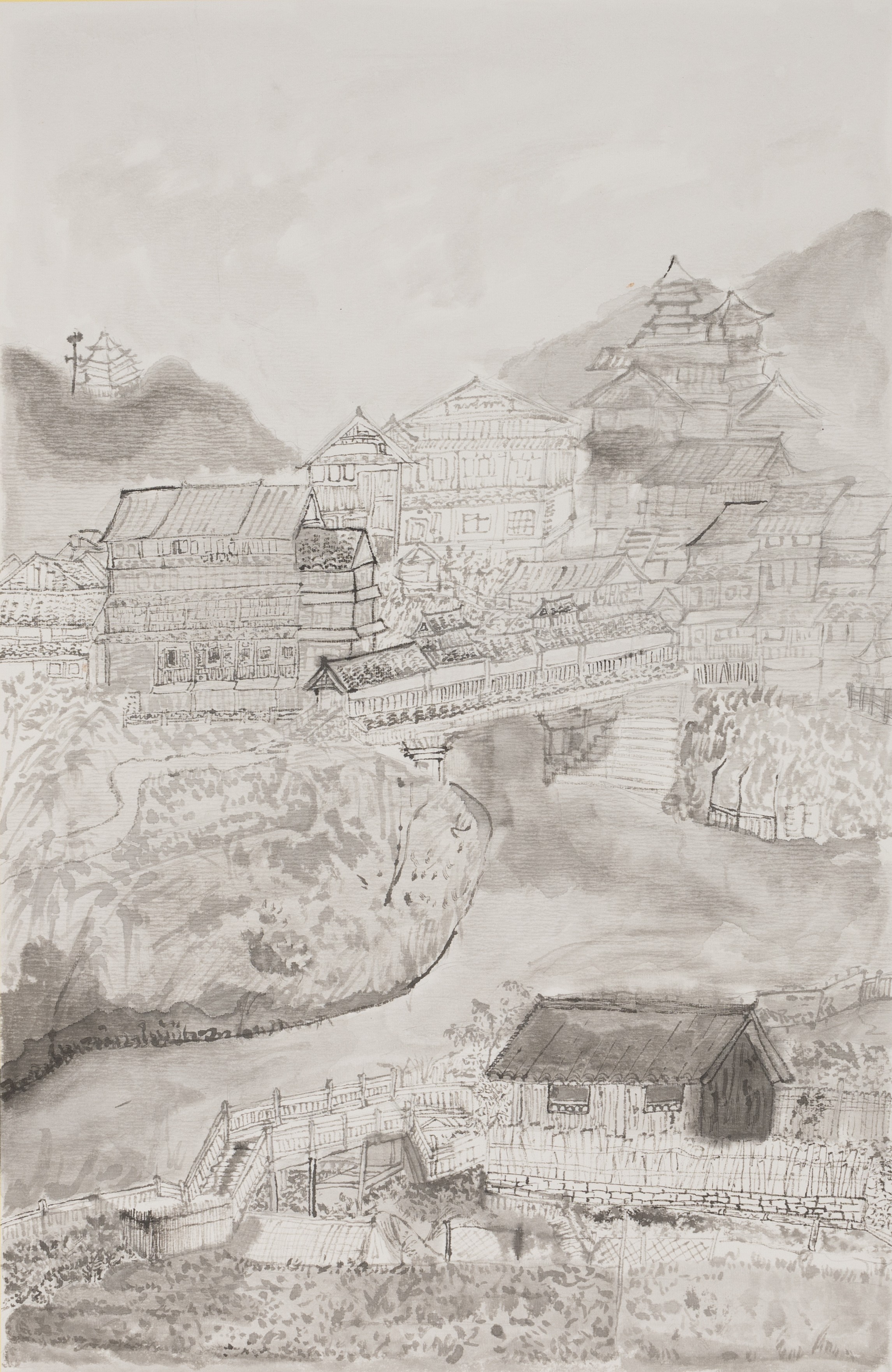 刘芯怡,美术学专业,《古镇静谧》,45x33cm,中国画
