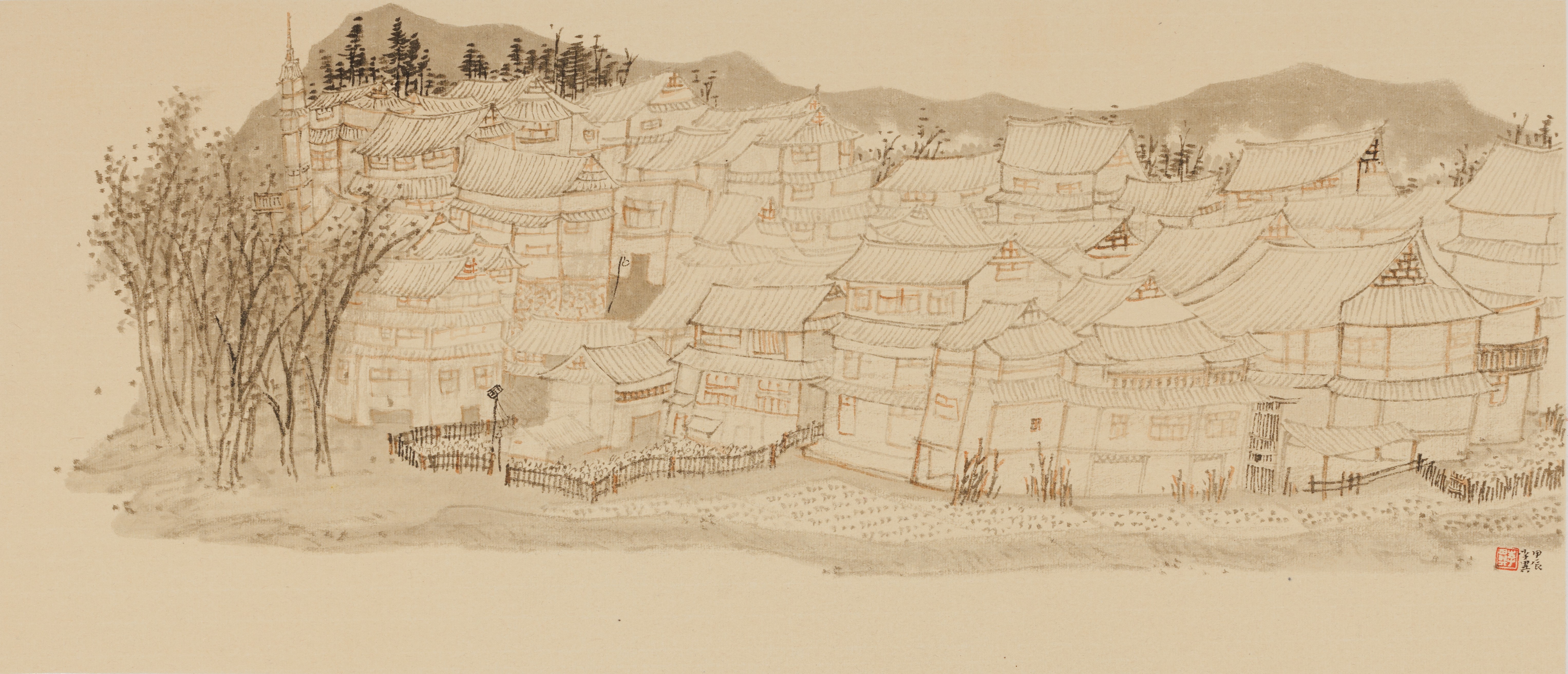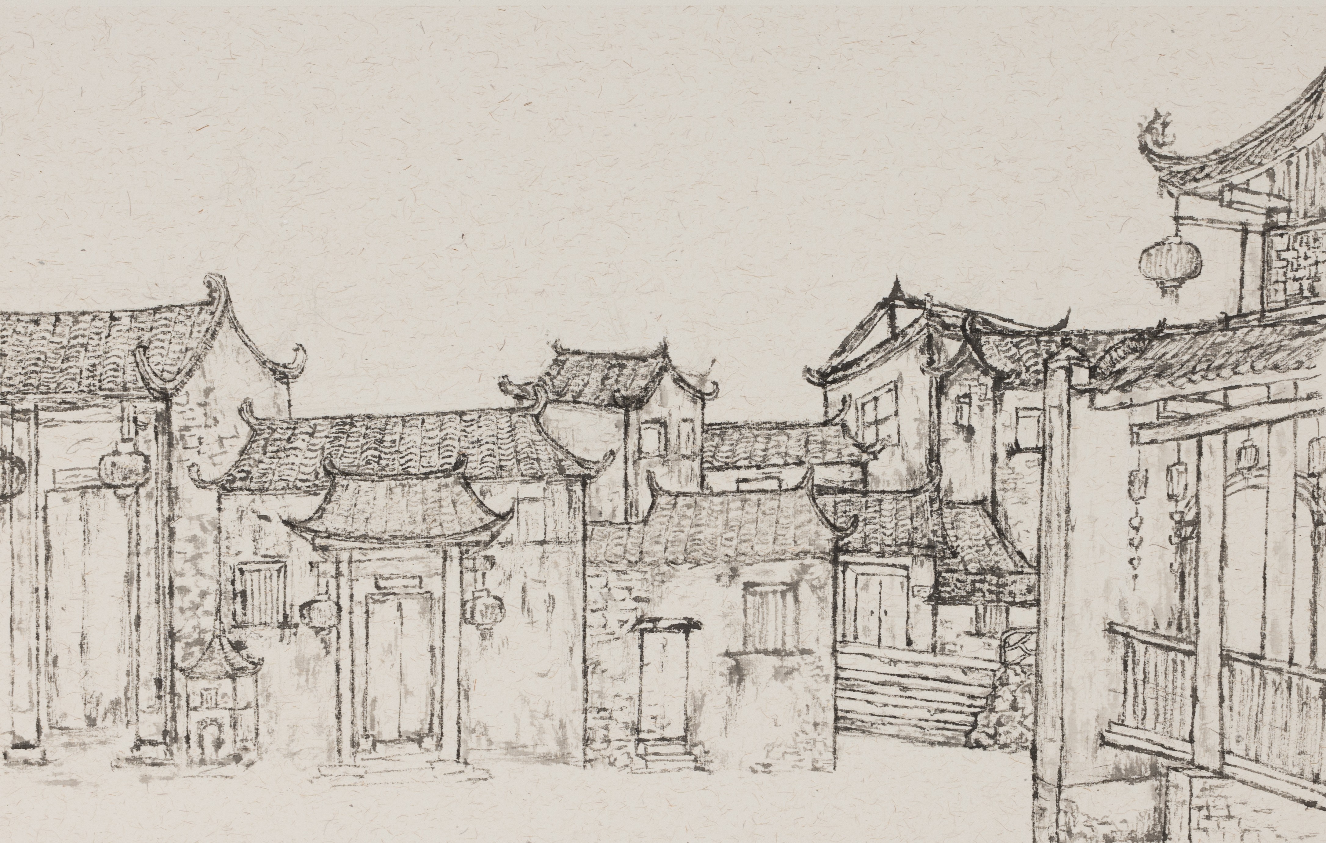 黄凤兰,《村巷时光》,25x50cm,中国画