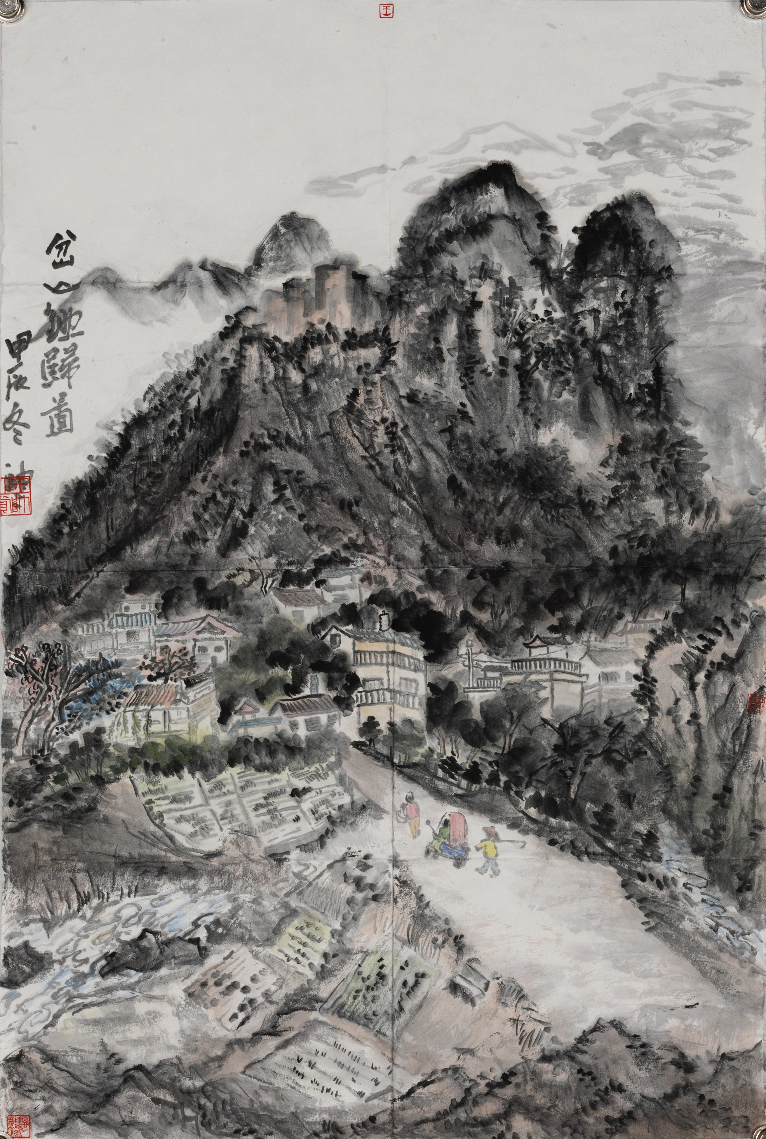陈建江,《朝东村口》,45x65cm,中国画