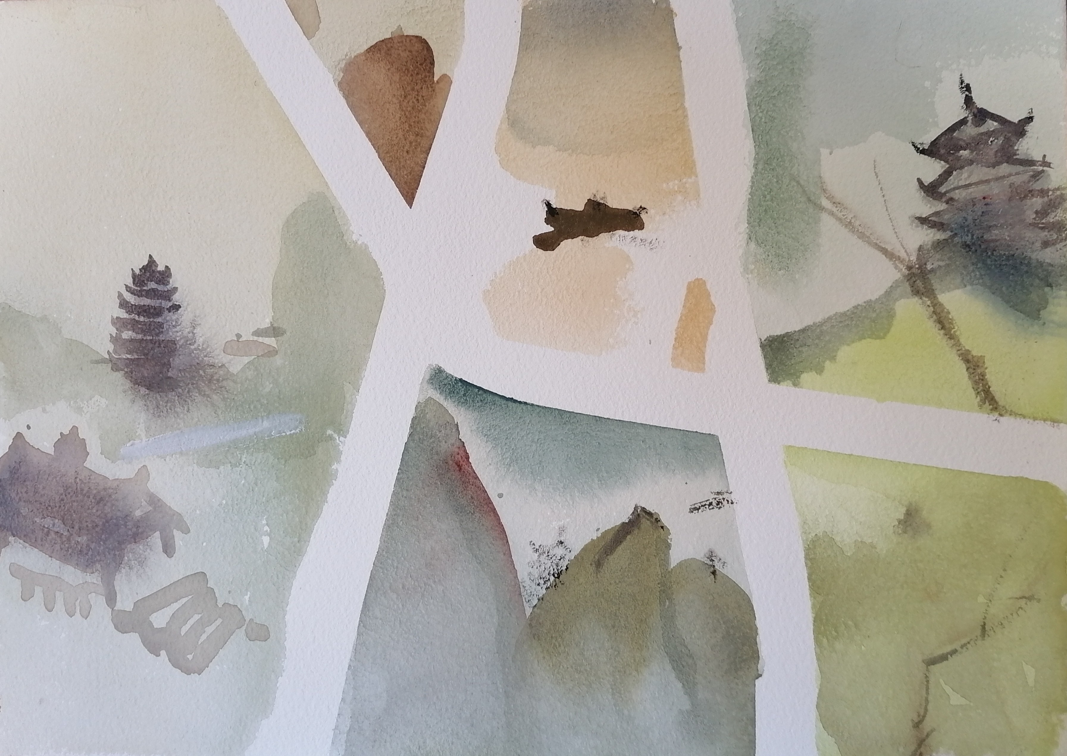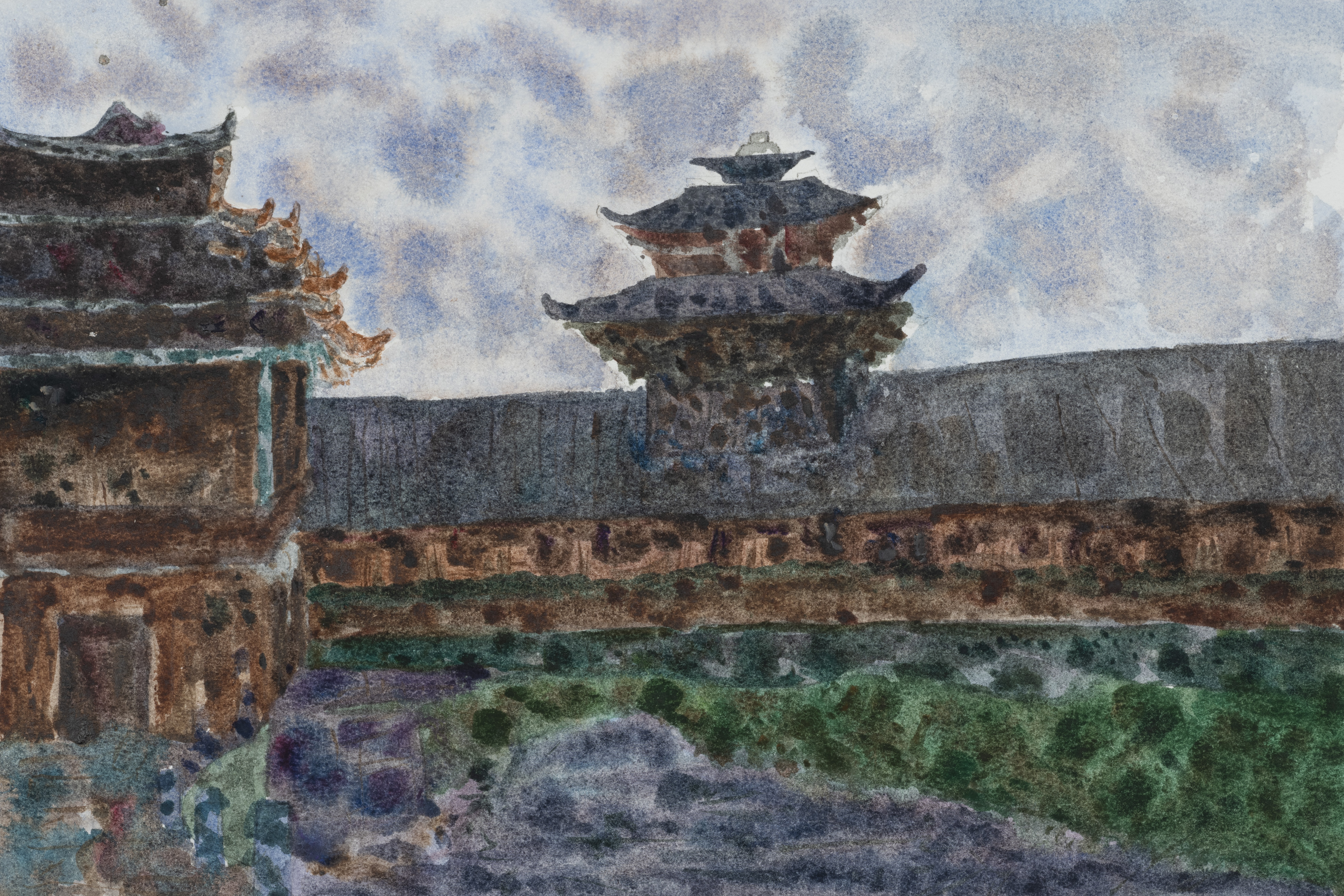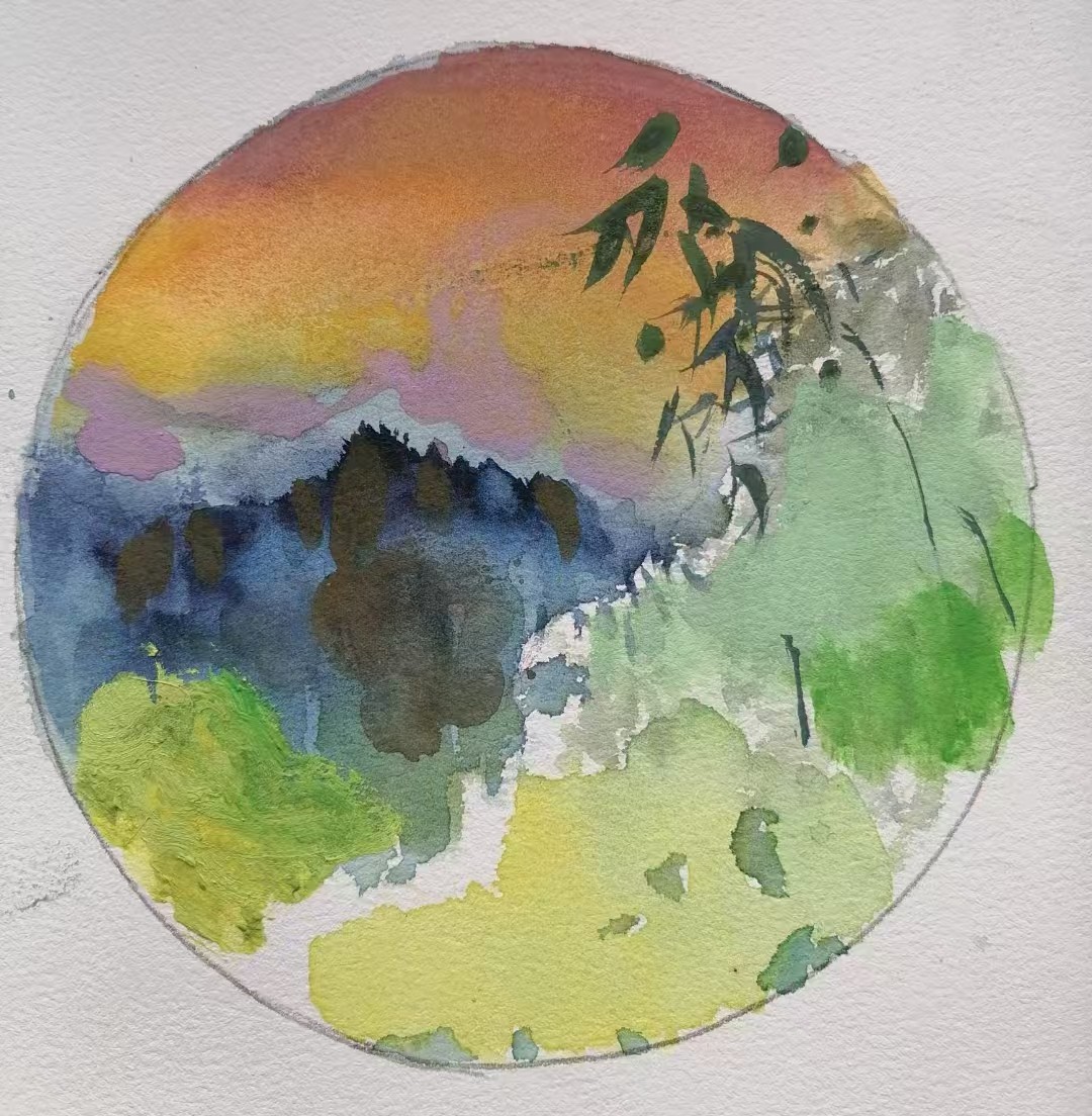黄桂菁,美术学专业,《云雾里》,27x39cm,纸本水彩