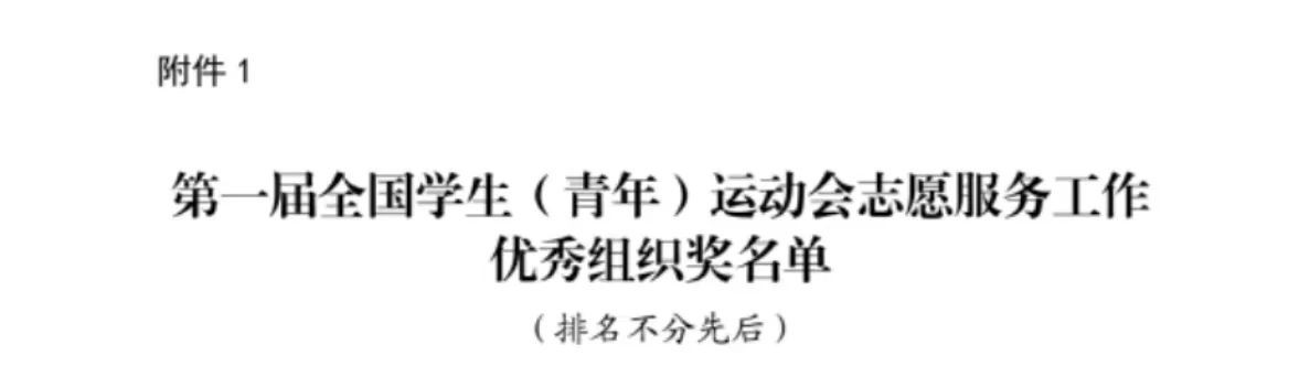近期,第一届全国学生(青年)运动会执委会志愿者工作部下发《关于通报表扬第一届全国学生(青年)运动会志愿服务工作优秀组织奖和优秀志愿者的通知》,我校荣获学青会志愿服务工作优秀组织奖,并有11位同学荣获优秀志愿者。