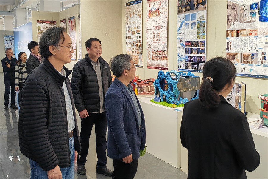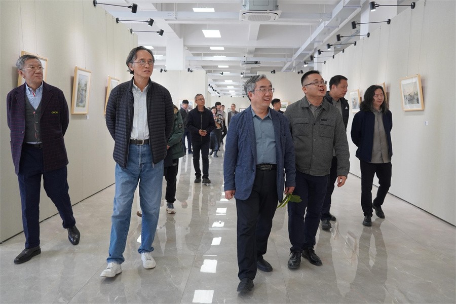 交流会前,覃川书记一行先后参观了学校校园环境、石碑书法艺术文化景观长廊、大师工作室,绘画和雕塑展览、师生设计作品展等。(郭松/摄)