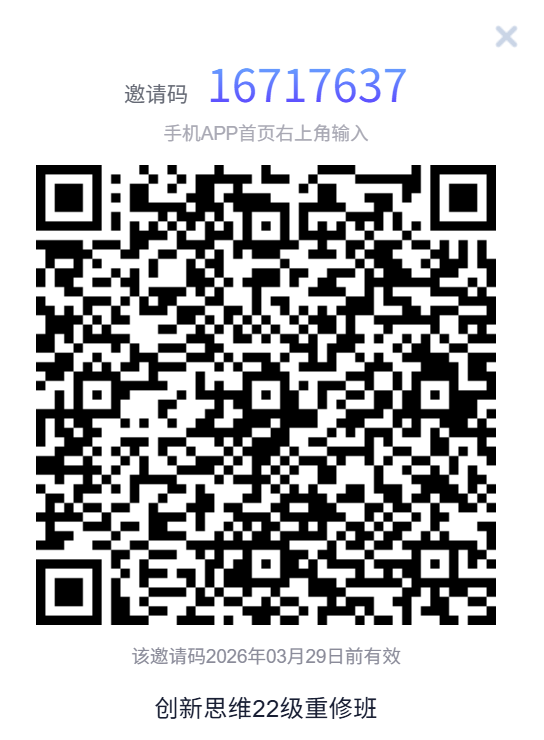 (十三)《创新思维》由哲学学院实施,请2022级重修的同学在手机上下载学习通APP,并于2025年10月30日前实名(学号+姓名)进入班级,班级群二维码如下: