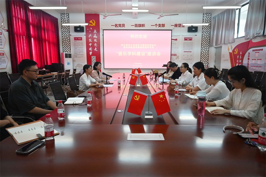 在“音乐学科建设”座谈会上,黄妙秋院长热情分享了南宁师范大学音乐与舞蹈学院的发展历史、学院概况、专业建设、师资队伍、课程建设、学生就业及学院未来的发展方向,详细介绍了学科专业人才培养计划、南宁师范大学校办学理念及民族教育办学特色。人文教育学院熊秀峰院长、李谦副院长出席座谈会并与黄院长进行了深入友好的交流探讨。座谈会由艺术教育教研室孙嘉昕主任主持。