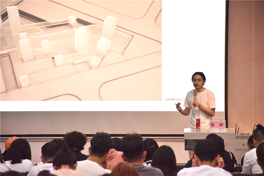 讲座过程中,张昕老师还分享了他的个人作品,为同学们分析了建筑设计行业目前的发展状况以及面临的问题和挑战。他希望同学们不断学习,广泛了解行业及社会需求,形成独立思考能力,做一个善于发现问题、思考问题的优秀建筑设计师。