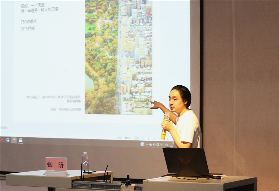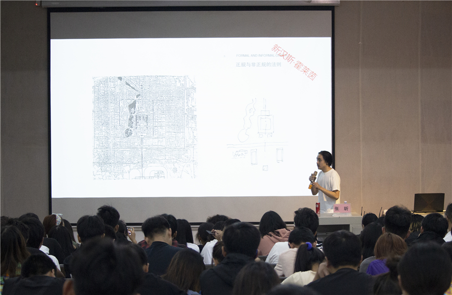 张昕老师首先给同学们阐述了建筑设计的定义,即“建筑设计是用一切可以统治的手段去建造一个东西的技术”,列举了一系列的建筑设计案例引发大家深入思考“两千年前和两千年后的建筑会发生什么变化”。
