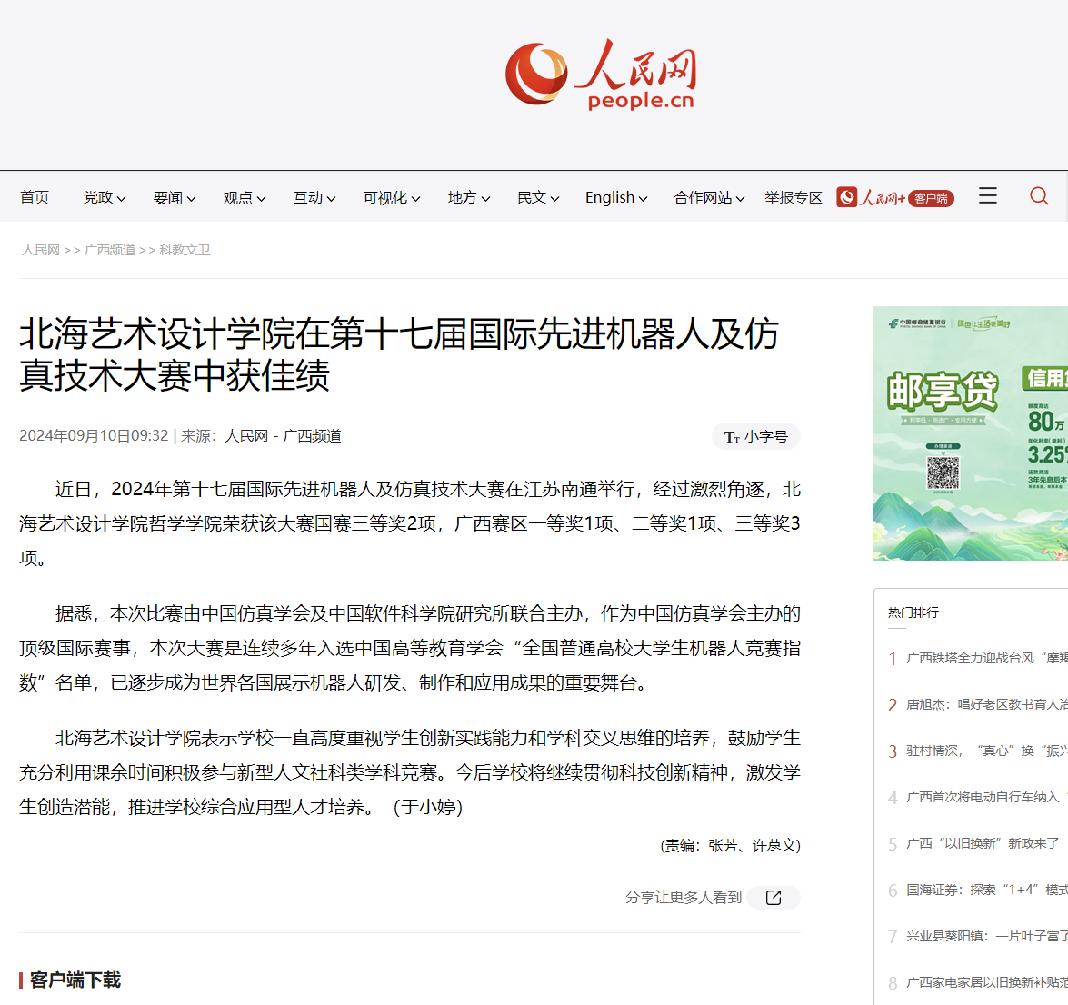人民网:北海艺术设计学院在第十七届国际先进机器人及仿真技术大赛中获佳绩
