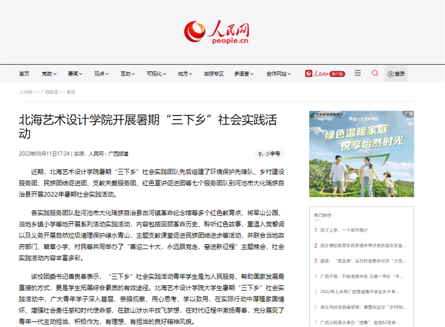人民网:北海艺术设计学院开展暑期“三下乡”社会实践活动