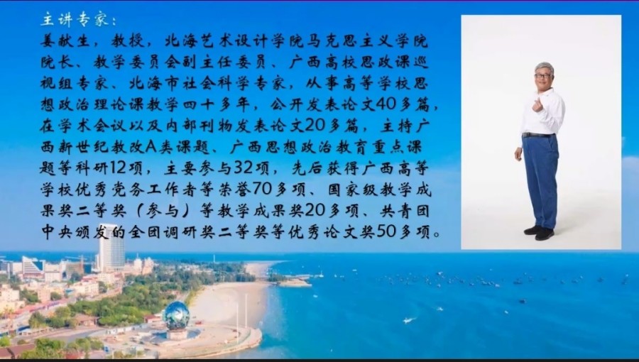 为进一步将党的二十大精神融入思政课教学,切实推动北海市大中小思政课一体化创新发展,12月22日上午,我院组织全体教师参加了由北海市教科所线上举办的“党的二十大精神融入思政课”研讨会暨大中小思政课一体化教学展示活动。活动议程包括开幕致辞、教学展示、研讨发言、主题报告、活动总结五个环节。我院长姜献生教授应邀作主题报告以及思政课教师苏李荧代表大学作教学展示。