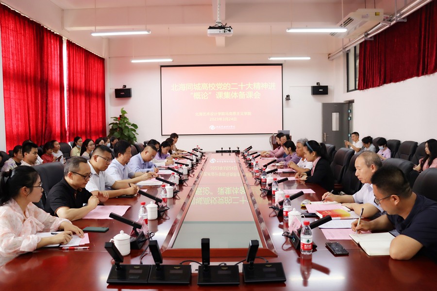 此次备课会由我校牵头组织,桂林电子科技大学北海校区、北海职业学院、北海康养职业学院应邀参加。与会各高校对党的二十大精神融入思政课分别作了经验分享和本校特色亮点介绍,同时派出优秀教师代表就如何将党的二十大精神切实融入“概论”课进行了现场教学展示,为共同推进党的二十大精神进教材、进课堂、进头脑献策献力。