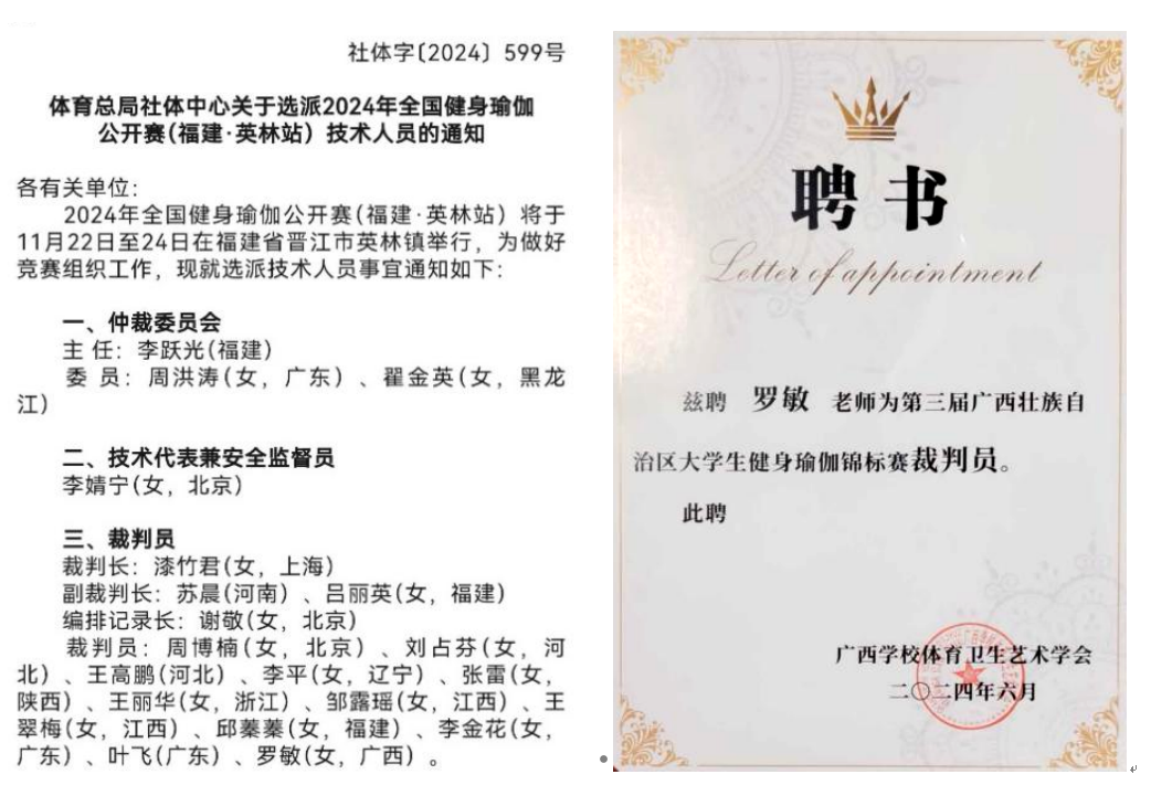 我校 罗敏 老师助力全国健身瑜伽赛及广西大学生 健身瑜伽锦标赛裁判工作