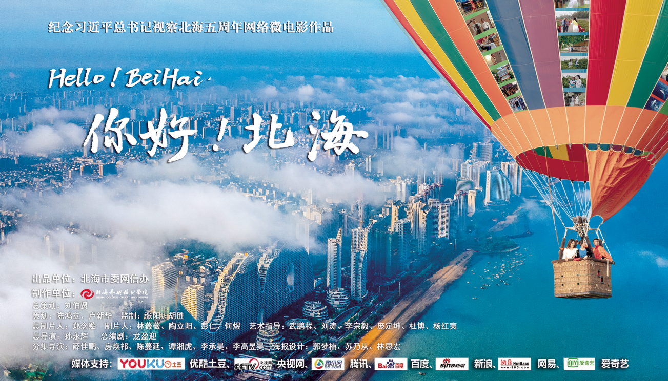 《Hello!BeiHai~你好!北海》是由北海市委网信办、北海艺术设计学院共同出资的网络微电影作品。该作品是为纪念习近平总书记视察北海5周年,同时喜迎二十大召开,以微电影宣传片形式展现北海近5年来的发展以及北海的新面貌。打破惯常的画面展示方式,用4集生动的故事讲述北海的历史文化、向海经济、生态文明建设。拉近与观众的距离,从而让观众对北海有更深刻的认识,为全国乃至全球打造一张北海新名片。该作品将于2022年9月正式上线。