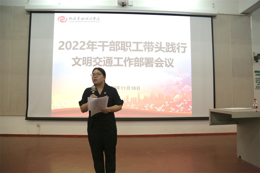 会上,韦静月传达了近期市创城办文明交通情况通报会精神,并组织与会教职工学习了解学校制定的《北海艺术设计学院关于干部职工带头践行文明交通的试行办法》文件。