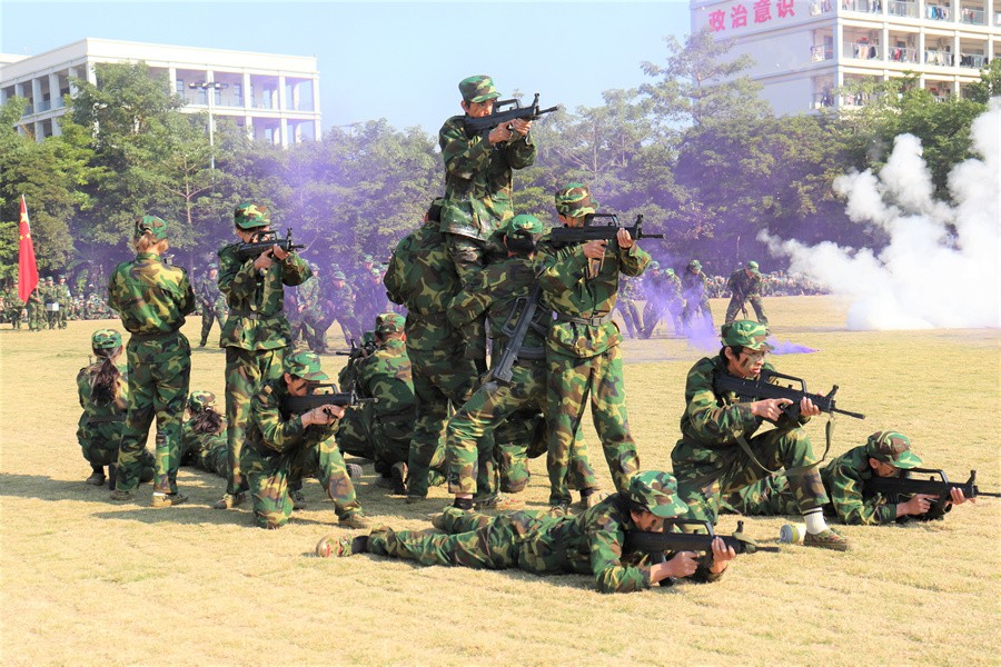 校长卢新华一句“按计划进行”话落,军训成果展示汇演正式开始。