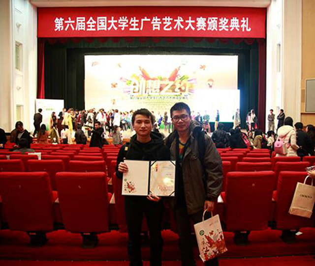 第六届全国大学生广告艺术大赛(大广赛)颁奖典礼日前在北京市全国政协礼堂隆重举行。教育部原副部长吴启迪出席颁奖典礼并致辞,来自全国各参赛院校的近千名师生代表参加颁奖典礼。在本届大广赛中,由孙竹青老师指导的12级数字媒体专业共三组学生报送的影视类作品全部获奖,收获全国三等奖1项,广西区一等奖1项、二等奖1项、三等奖1项,他们分别是覃志线、曹焕林、郭兴芳、陆露、王小清、高国美。近年来,我院高度重视学生实践创新能力培养,大力支持学生参加各类学科竞赛活动。学校整合教育资源,促进校企合作,为学生专业能力提升打造优质实践教学平台,学生在各类实践创新活动中屡创佳绩。