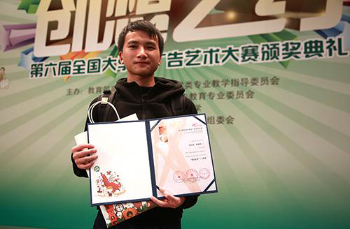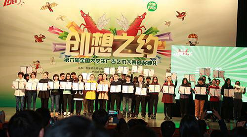 据悉,全国大学生广告艺术大赛是由教育部高等教育司支持,教育部高等学校新闻传播学类专业教学指导委员会、中国高等教育学会广告教育专业委员会共同主办的全国高校文科大赛。本届大赛以“创意我成长”为主题,参赛作品分为平面类、影视类、微电影类、动画类、广播类、广告策划案、企业公益广告7大类,共有来自全国2427所高校近60万大学生参赛。在参赛的22万件作品中,经过院校、分赛区和全国三轮评比,共评出一等奖作品40件,二等奖作品152件,三等奖作品427件,优秀奖1547件。