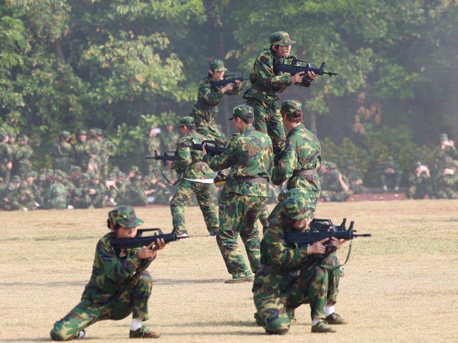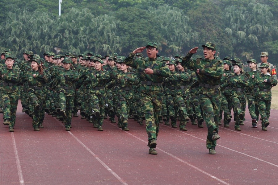 校长卢新华下达军训成果展示指令