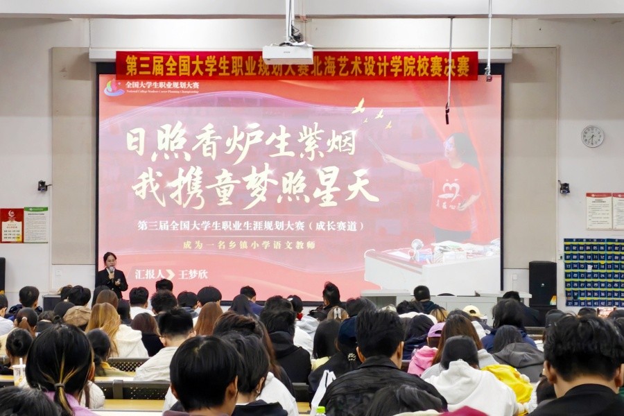 为深入贯彻落实党中央、国务院关于高校毕业生就业工作的决策部署,切实加强我校学生职业生涯教育和就业指导,增强其职业规划意识与就业竞争力。12月5日,第三届全国大学生职业规划大赛北海艺术设计学院校赛决赛在学校公德楼107教室举行。大赛以“筑梦青春志在四方,规划启航职引未来”为主题,搭建起生涯教育大课堂、人才供需对接大平台与就业服务大市场,为全校学子提供了展现职业理想、提升就业竞争力的优质舞台。
