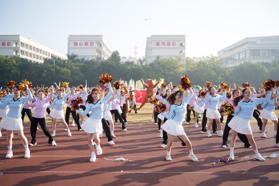 在激昂的运动会开幕氛围中,由舞蹈学院、设计艺术学院、影视动画学院、美术学院、服装学院与文学院师生联袂演绎、汇聚多学科艺术力量的大型歌舞《永不言败》惊艳登场,成为全场焦点。节目以“永不言败”的体育精神为内核,舞动青春绚丽色彩,蹈出生命无限可能,唱响青春华章,将不同学院的专业特色巧妙融合,呈现出一场兼具视觉冲击力与精神感染力的艺术盛宴。