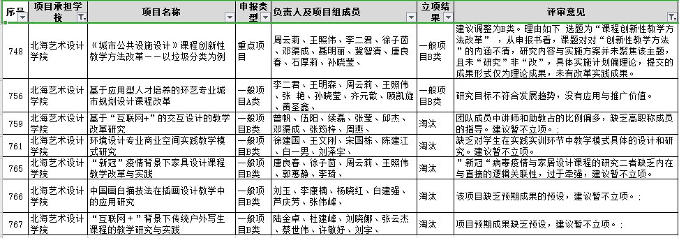 项目通过名单: