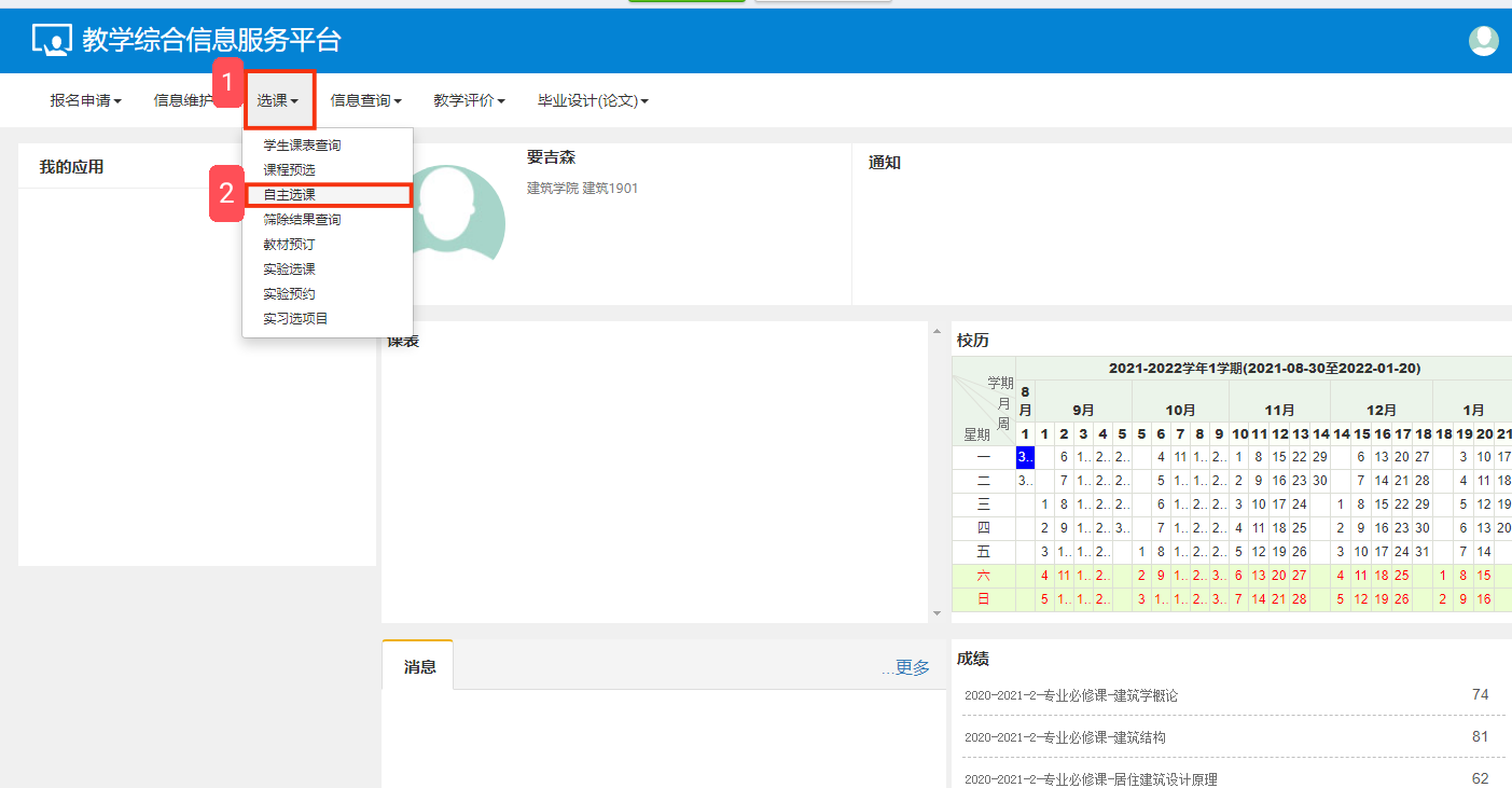 (二)2021级全体学生:8月31日(星期三)、9月1日(星期四)进行网上选课。