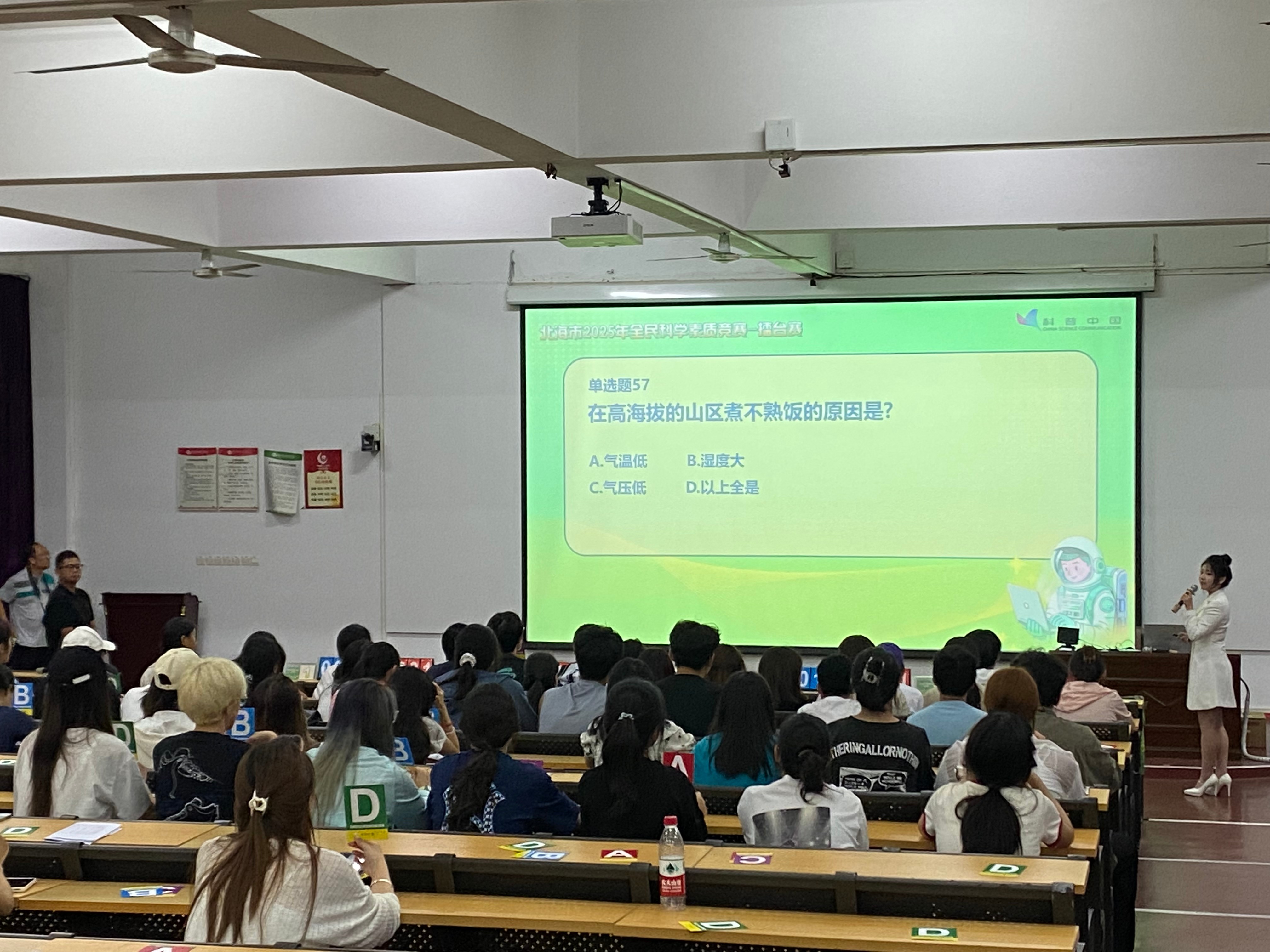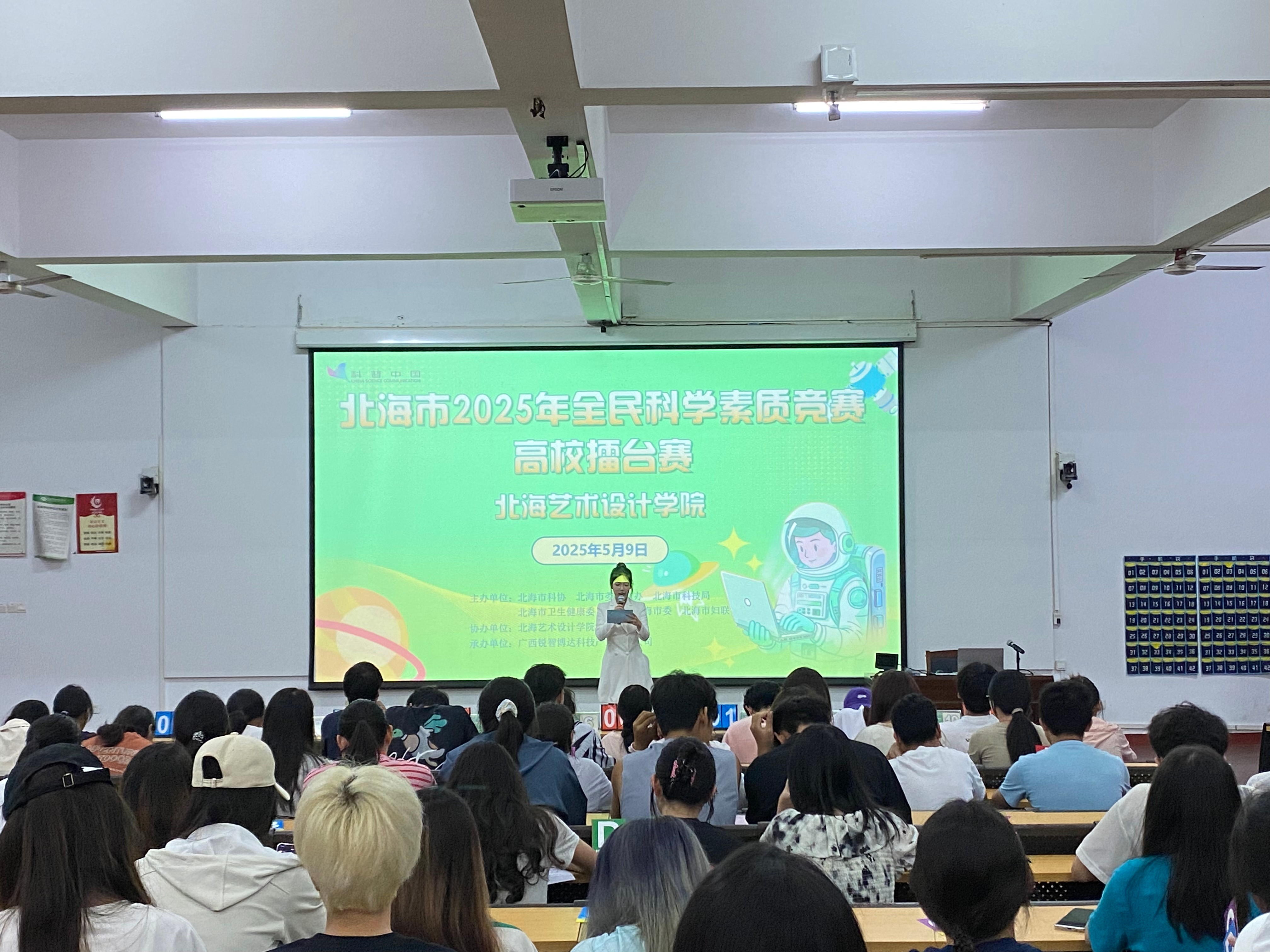 为深入贯彻《中华人民共和国科学技术普及法》和《北海市全民科学素质行动规划纲要》,全面提升我市公民科学素质水平,激发青年学子科学探索热情,培养创新思维与实践能力。我校于5月9日在西校区伦理楼107举办北海市2025年全民科学素质竞赛北海艺术设计学院百人赛。