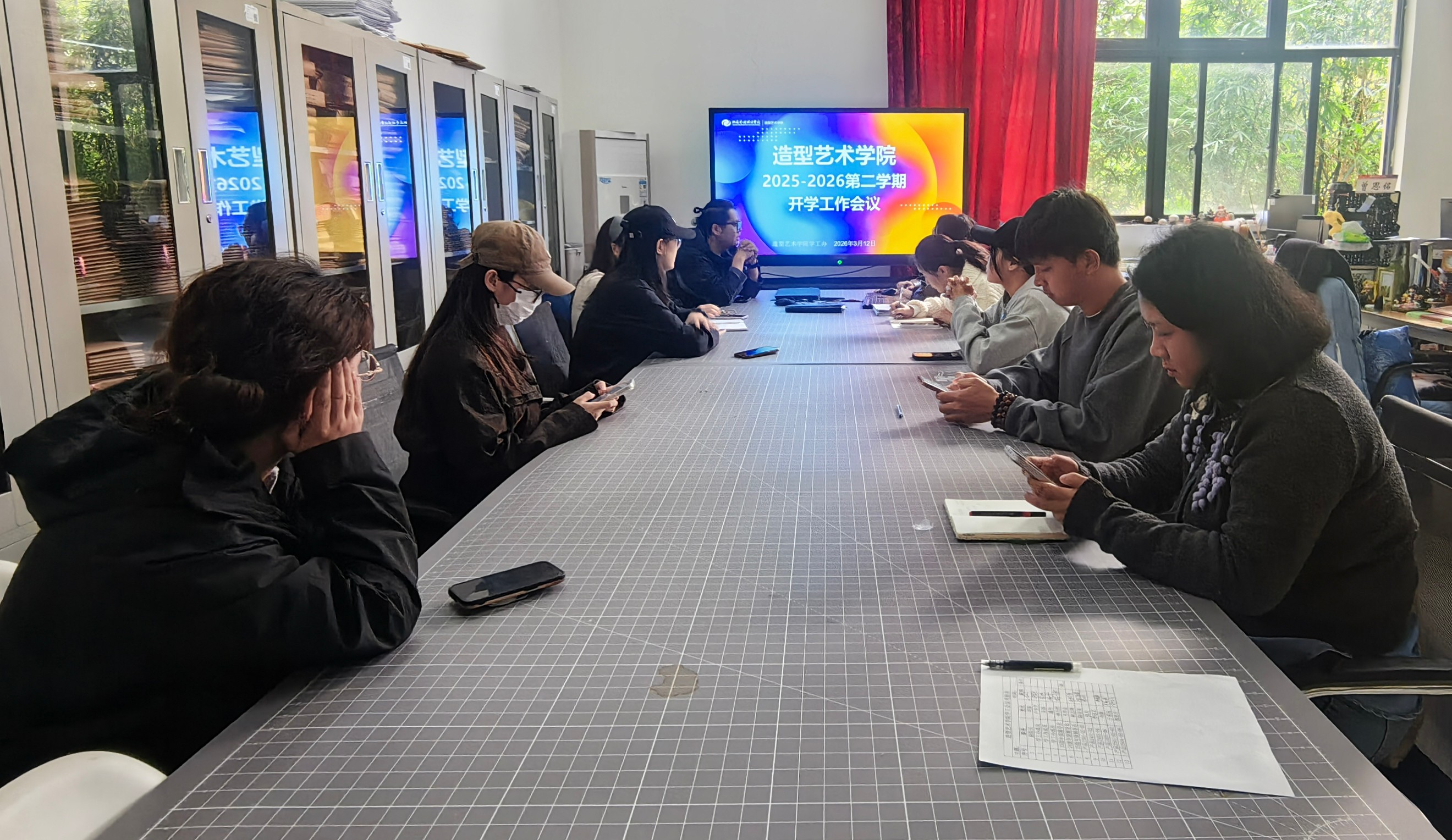 为统筹部署新学期学生工作,明确工作方向、压实工作责任,确保各项学生工作有序推进、落地见效,3月12日上午11:40,造型艺术学院在西校区功德楼104召开2025-2026学年第二学期开学工作会议。分管学生工作副院长胡毅出席会议,全体学工办老师、23-25级班级及年级辅导员参加会议。