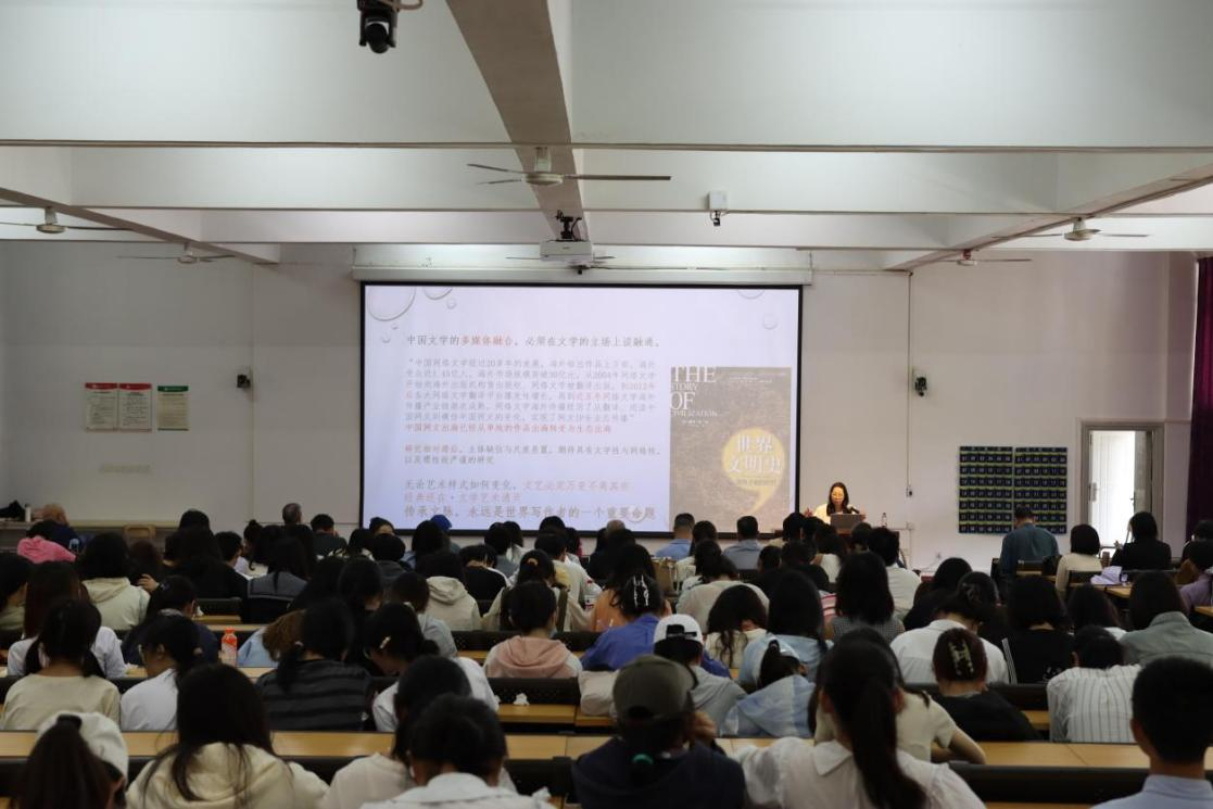 讲座伊始,张燕玲主席对受邀参与“文化北海”建设活动以及为我校师生开展讲座表达感谢,并简要介绍了本次讲座的内容。张燕玲主席首先指明当下丰富阔达的文学格局得益于开放互通的时代语境。改革开放带来世界性对话,构建了当下文学格局的丰富阔达,也为中国式现代化的文学表达提供了更多的可能性。在这样的时代,如何丰富文化创作,如何将自己和未来建立关系,如何把自己融入文艺中是文艺工作者应当思考的问题。张主席立足文学现场,通过青年作家王苏辛的《白夜照相馆》和文学名家莫言的《鳄鱼》进行分析,认为植根本民族文化,并以开放进取的姿态进行世界性的对话才能传承文脉,以文脉沟通世界才可能获得世界视野,有所发现,有所创造。优秀的文学必然超越地域和民族,以其艺术个性沟通着世界。张主席的讲授启发文艺工作者必须要立足于我们的本来,吸收外来,然后才可能面向未来。