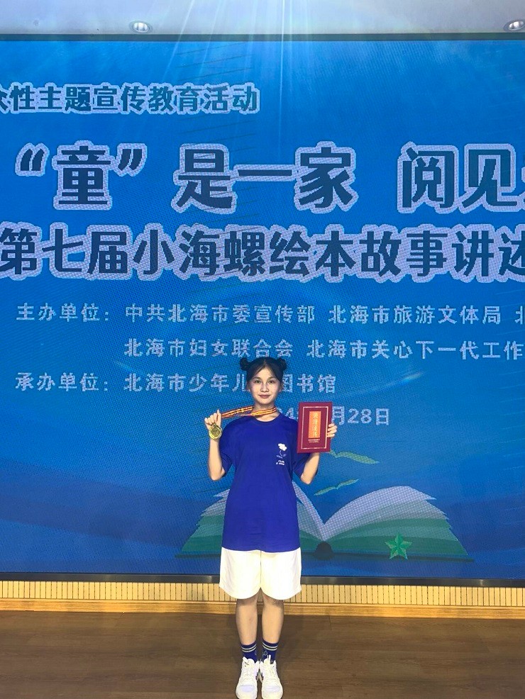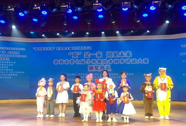 2024年7月, 由中共北海市委宣传部、北海市旅游文体局、北海市教育局、北海市妇女联合会及北海市关心下一代工作委员会联合主办,北海市少年儿童图书馆承办的“‘童’是一家 阅见未来”北海市第七届小海螺绘本故事讲述大赛圆满落幕。经过激烈角逐,我校教育学院2023级学前教育专业马杨燕荣获成人组一等奖,北海艺术设计学院荣获“优秀组织单位奖”,教育学院教师陈美霖荣获优秀组织者奖。