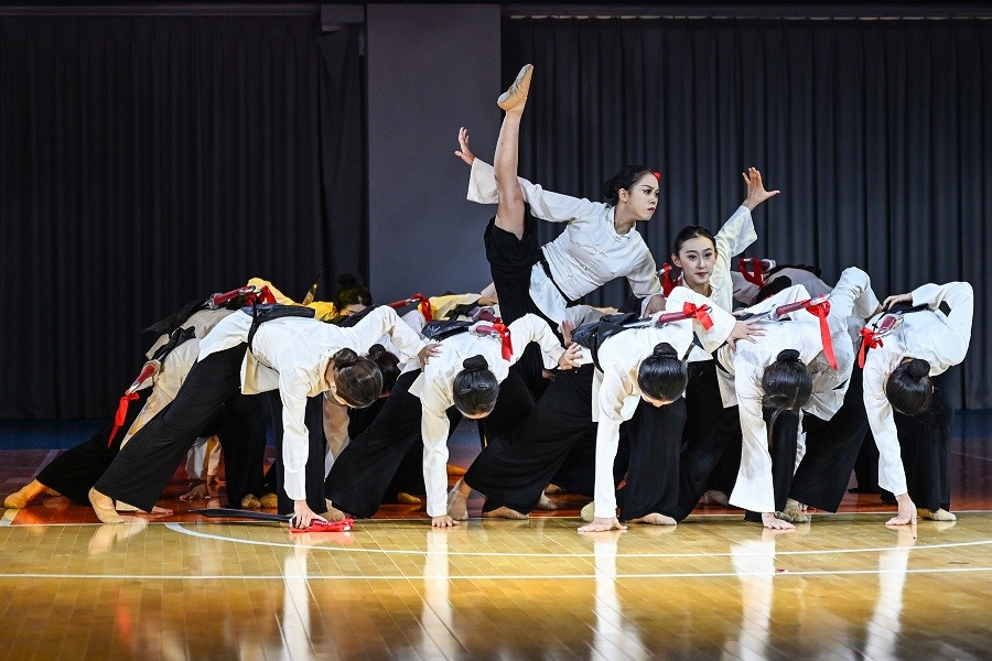 优秀剧目板块—以《锦绣十八洞》舞蹈开场。舞蹈呈现了苗绣传承人经过思考构思,以生动的舞蹈语言展现出十八洞村妇女们兴高采烈地用苗绣传统技艺编织幸福生活的情景,体现出村民们齐心协力、团结一致建设美好家园的精神。8个形式多样的优秀剧目使学生掌握各民族舞蹈的风格特点、动作语汇、文化背景等,从而成为民族文化的传承者,将这些宝贵的文化遗产传承下去。