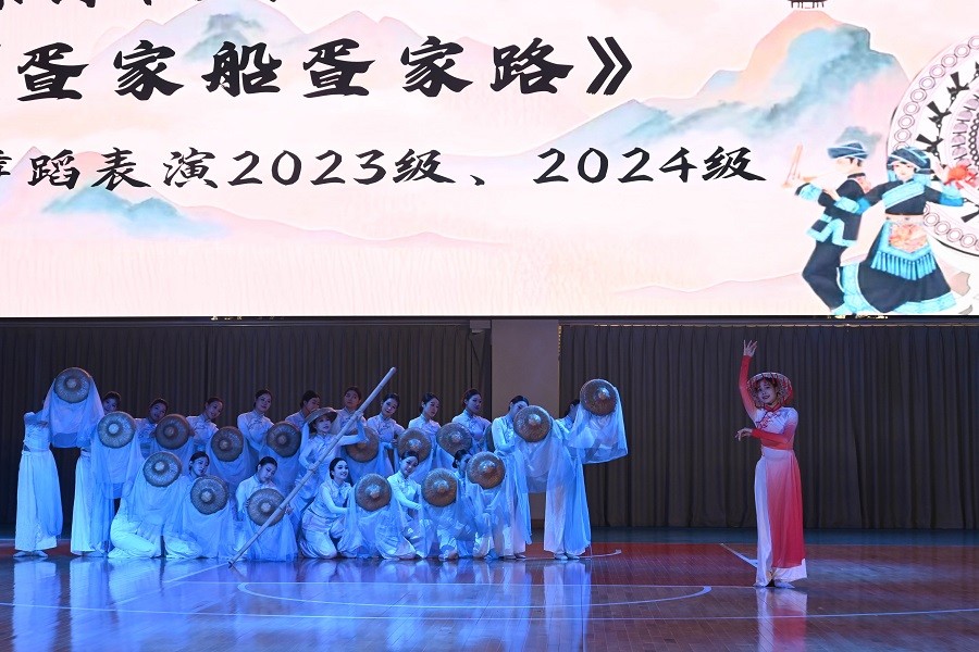 5月9日晚,我院于南校区三楼体育馆举办“乐满北海 梦归壮土”舞蹈表演专业2023级采风晚会。学校总督学王斌、学校学工处副处长刘玲花等领导嘉宾出席了本次晚会,与师生们一同欣赏这场舞蹈盛宴。