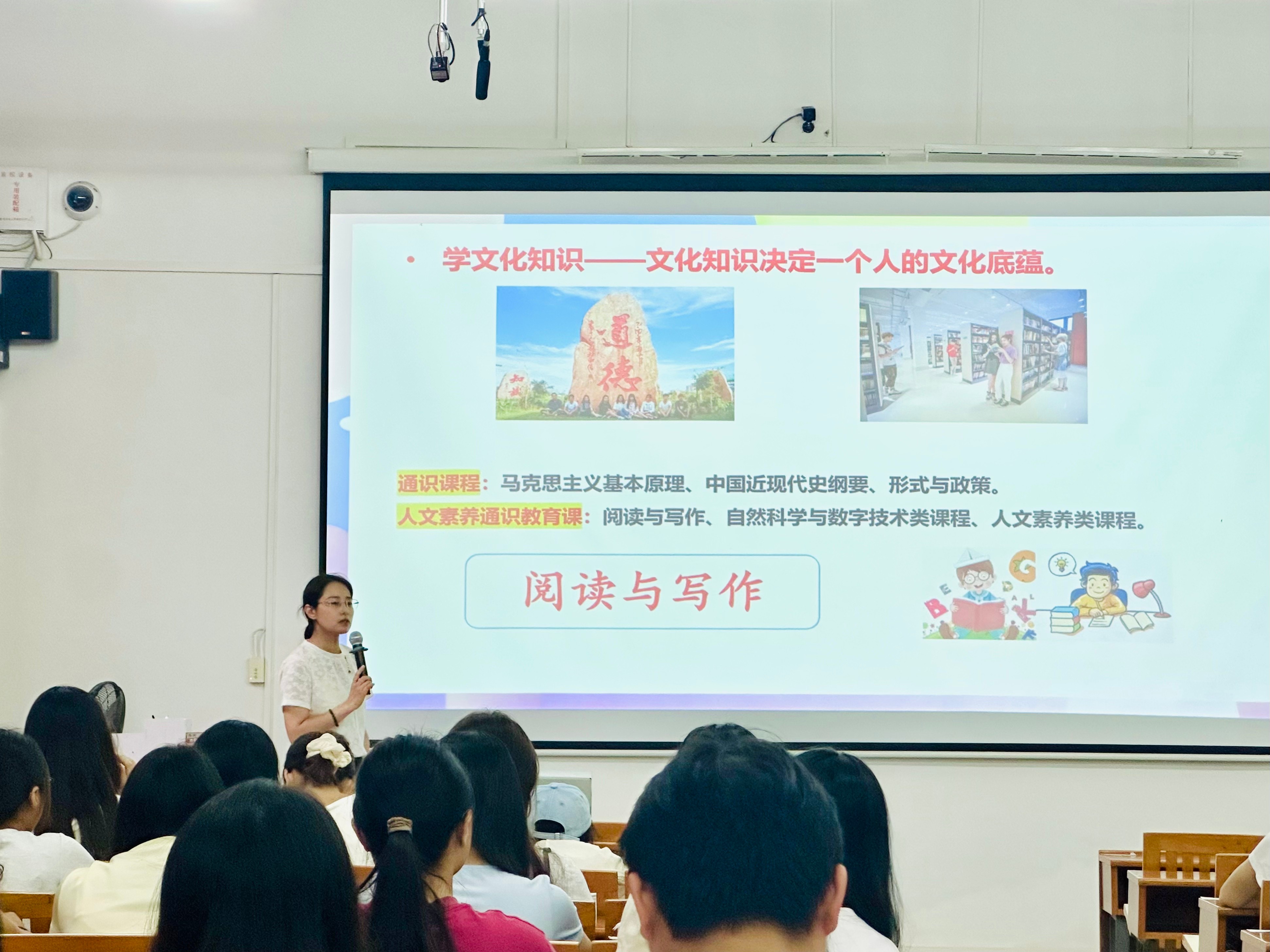 随后,教学副院长蔡森为专升本新生系统讲解学业规划与大学学习要点。蔡森副院长围绕“认识大学学习”展开详细分享首先强调大学学习的首要任务是践行社会主义核心价值观,叮嘱新生要扣好人生“第一粒扣子”;其二,重点解读人才培养方案,介绍了通识课程与人文素养课程的设置逻辑,提及阅读与写作对提升综合表达能力、逻辑思维能力的关键作用,同时明确汉语言文学专业的阅读要;其三,提出专业的学习建议,鼓励新生尝试跨专业学习、主动考取职业证书等,希望新生能借助这些课程实现“文”“艺”兼修,提升综合竞争力。