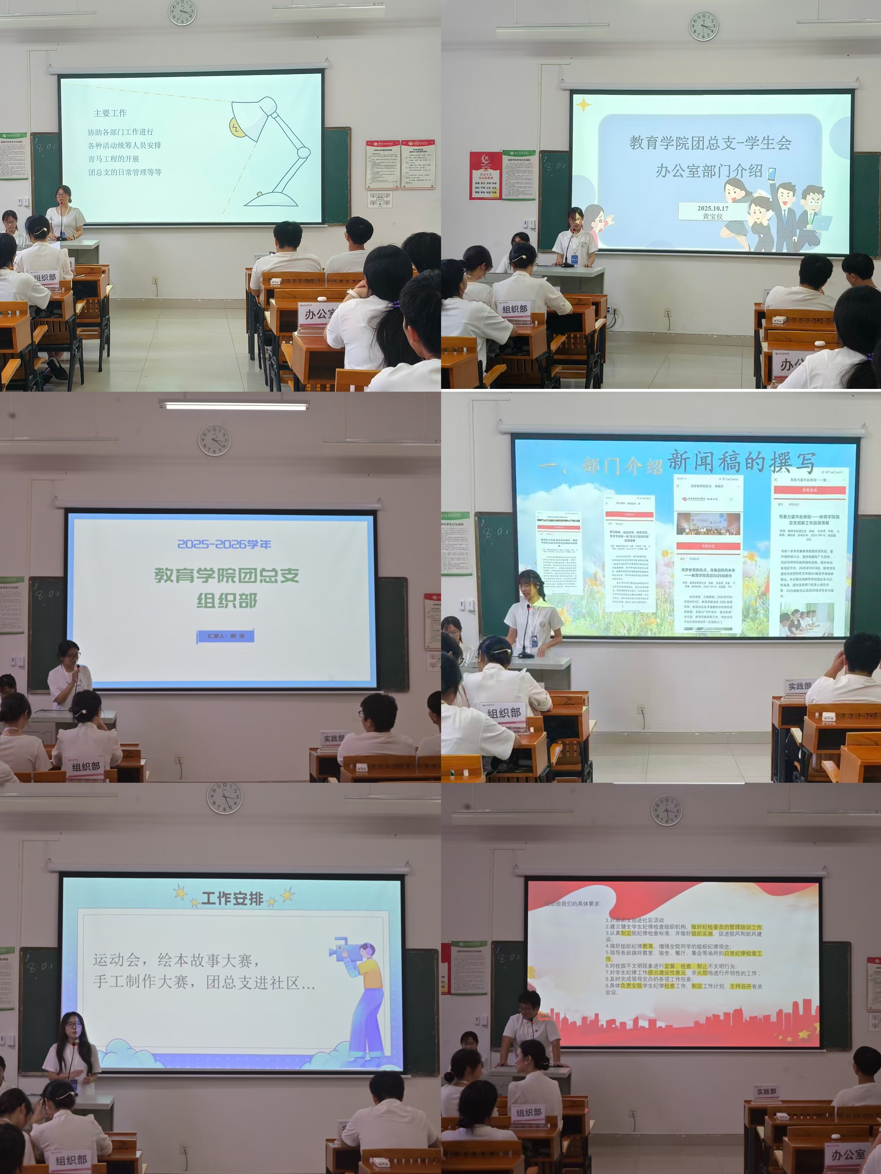 教育学院团总支第一次全体大会圆满落幕,高效完成三大关键任务:一是团总支负责人明确新学期团务工作规划与目标,强调围绕“教育赋能青年”主线开展活动;二是各部门代表通过PPT讲解职能分工与人员架构,为成员搭建了解组织、参与工作的桥梁;三是组织规章制度学习,强调日常规则遵守与惩戒条款,强化团员组织意识与纪律观念。
