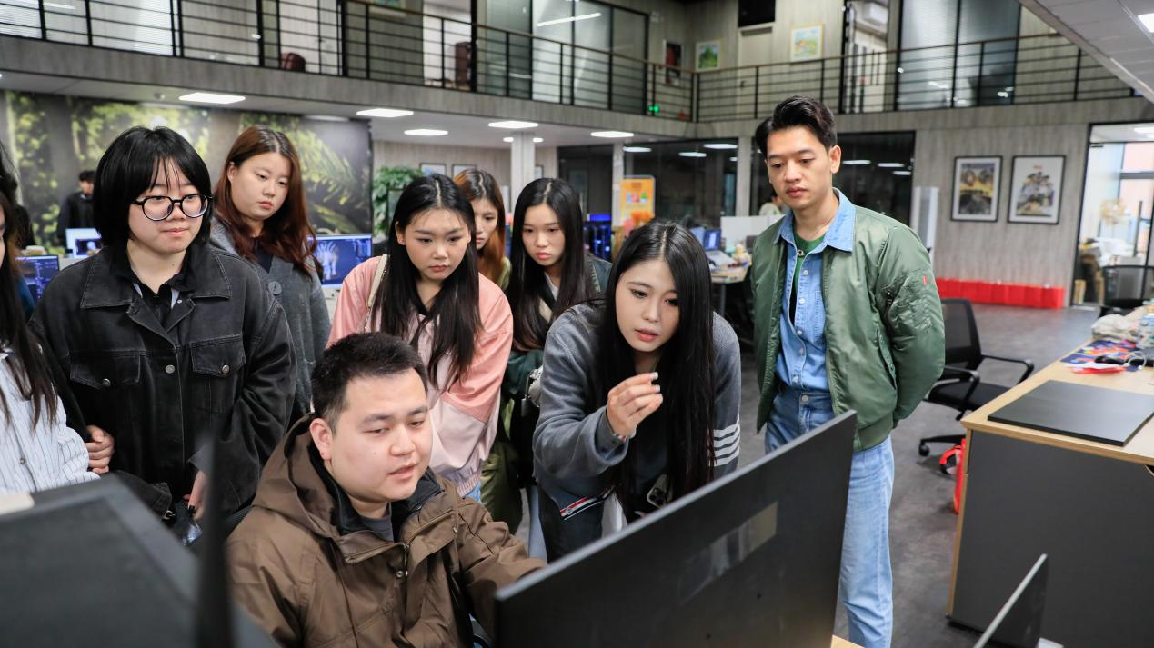 在卡斯特动漫有限公司,公司负责人全面介绍了企业的业务范围、项目运作流程,并展示了公司在技术创新上的突破与成就。学生们在专业人士的引导下,近距离观摩了动画项目从概念草图到最终成品的每一个精细环节,深刻体会了动画创作的艺术魅力与技术挑战。与一线动画师的直接对话成为了此次考察的亮点之一,学生们围绕动画设计技巧、软件应用、行业趋势等话题与一线动画师的直接对话,热烈讨论,从中汲取宝贵的实战经验和行业视角。