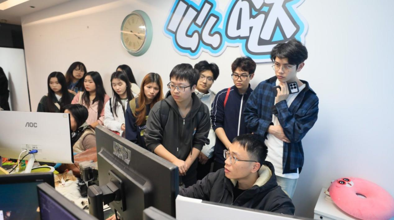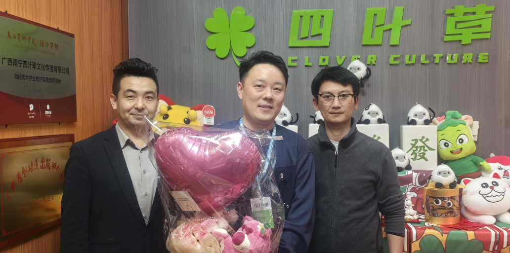 随后,考察团一行前往南宁四叶草动画公司。通过参观项目展示区和工作坊,学生们对动画产业的多元化运作模式有了更为直观和深刻的认识。孙永辉院长在考察期间多次强调,校企合作是推动动画教育与实践紧密结合的重要途径。他提出,学院需不断创新合作模式,与企业共同构建人才培养体系,确保教育内容与行业需求无缝对接,从而提升学生的就业竞争力,实现学校、企业、学生的三方共赢。企业代表也表示,将深化校企双方的合作、共建实习实训基地、开展联合创新项目,进一步拓宽合作领域,为学生提供更多实战机会和高质量就业岗位。
