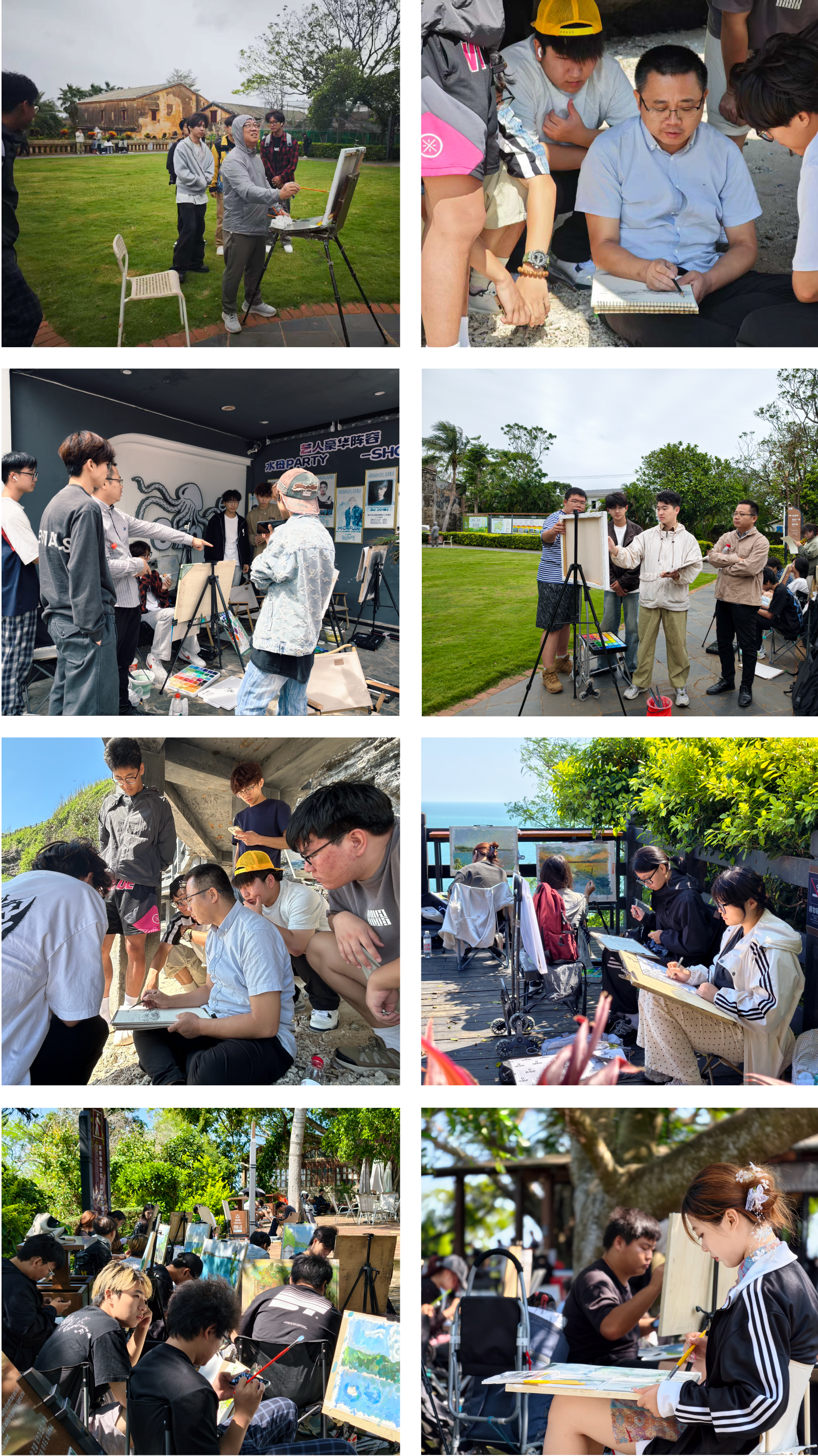 2025年10月19日至23日,美术学院组织摄影、绘画、雕塑、美术学四个专业学生赴涠洲岛开展综合实践教学活动。此次活动由学院院长龚为学院党总支书记韩玮共同带队,石强教授学工办副主任、各班辅导员及任课教师组成教学团队全程指导,将风景写生课程与思政教育深度融合,打造了沉浸式艺术实践课堂。