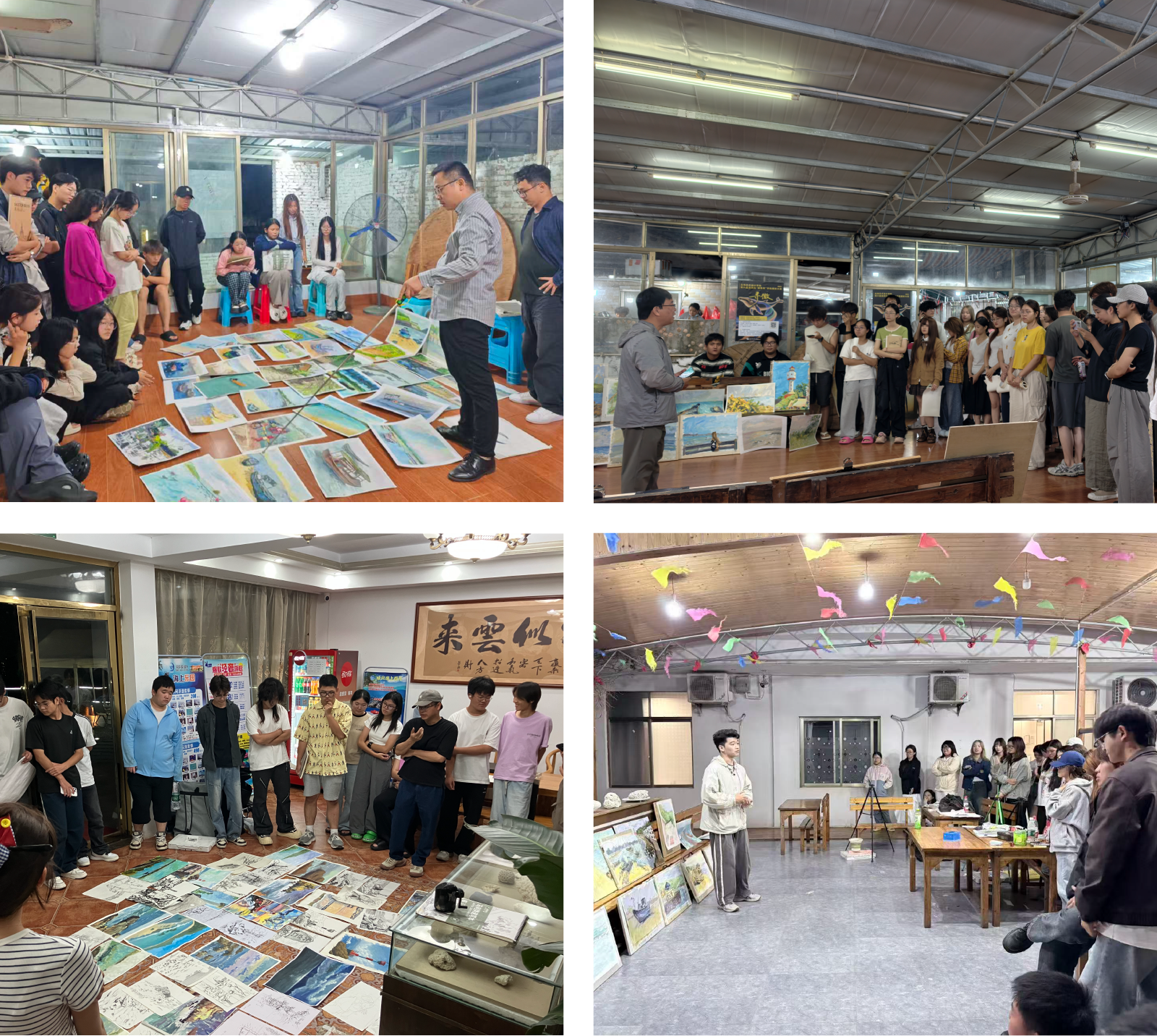 每日晚间的评画环节成为实践教学的重要延伸。任课教师与石强教授逐一点评学生作品,从构图、色彩到情感表达进行细致指导,既肯定创作亮点,也指出改进方向,帮助学生及时消化当日所学,实现创作能力的阶梯式提升。