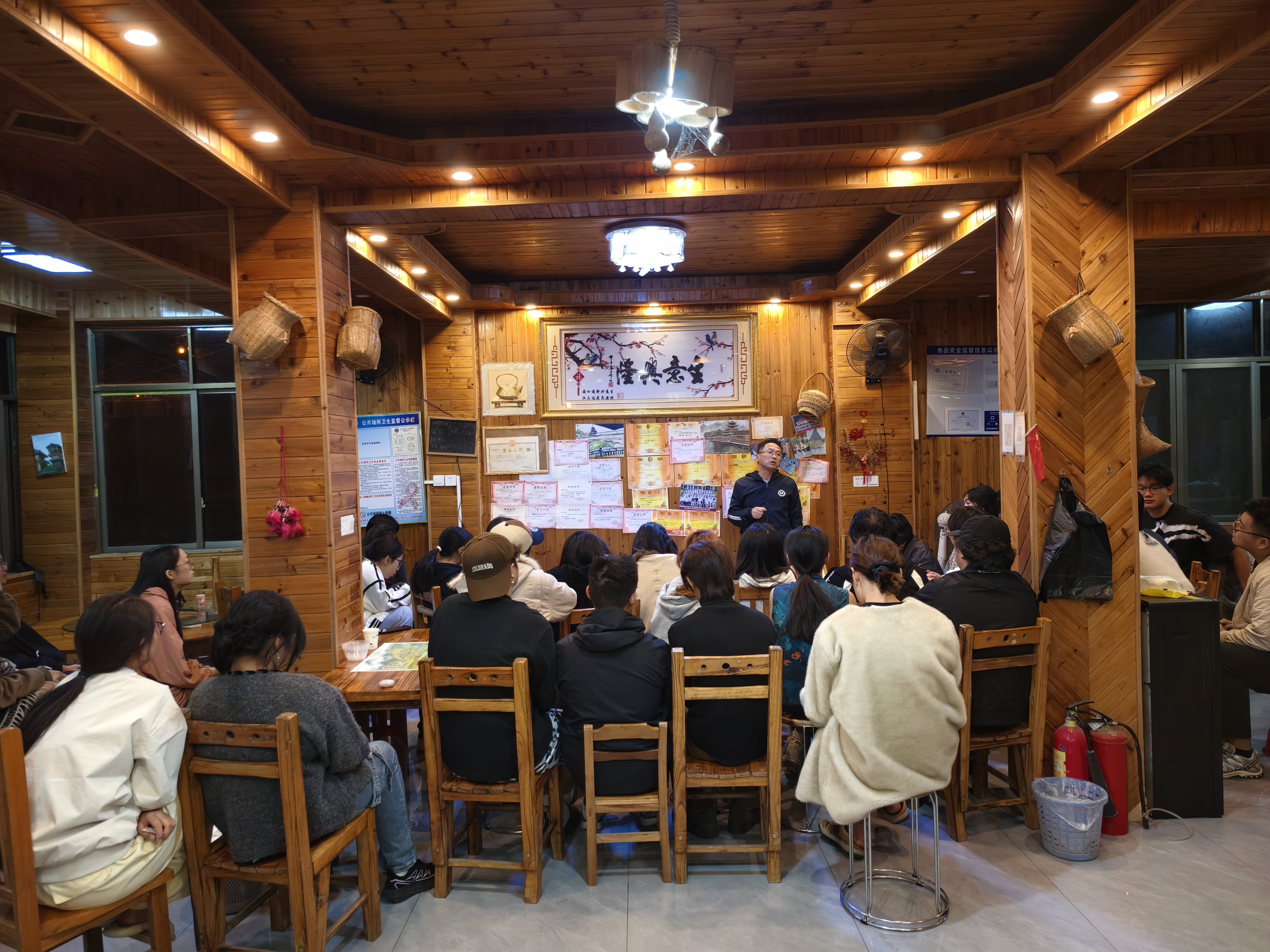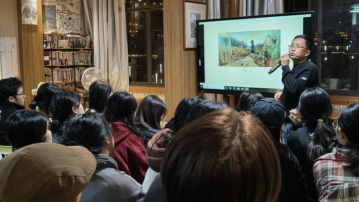 2025年11月3日晚7点,陈政军教授于三江侗族程阳八寨写生实验基地为24级美术学、绘画专业学子带来水彩与油画写生创作经验分享讲座。