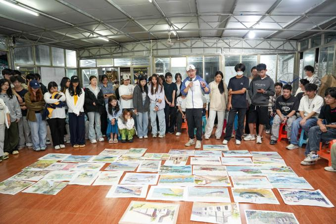 实践期间,学院依托“日间实景教学+夜间集中复盘”的双重指导模式,推动两个专业精准发力、各展所长。数字媒体艺术专业以火山地质公园、南湾码头等核心点位为创作基地,学生们或蹲坐礁石间勾勒线条,或携带设备采集海岸线动态影像,细致捕捉椰林光影、落日归帆的瞬息变化。带队教师穿梭于各写生点,针对构图偏差、色彩冷暖把控等问题现场示范,手把手指导创作技巧。夜间评画会上,教师逐一点评当日作品,既肯定创意亮点,也精准指出线条、构图等不足,帮助学生理清“观察—提炼—重构”的完整创作逻辑。同学们产出了大量写生作品,采集了丰富的动态影像素材,为后续数字创作筑牢基础。