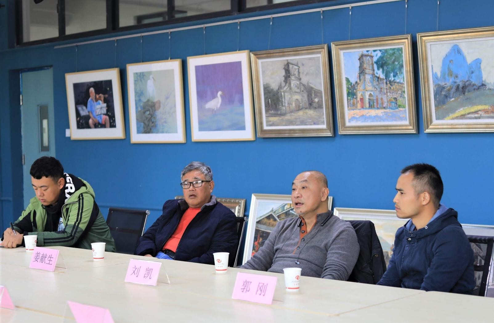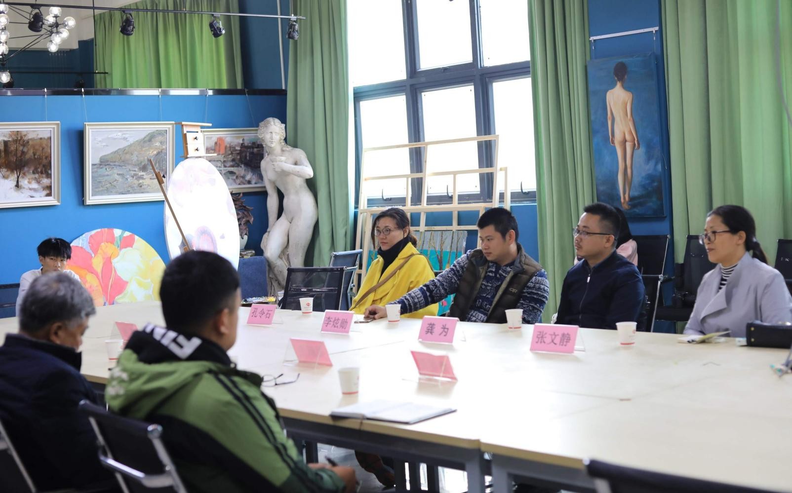 2019年12月2日星期一下午, 广西科技大学刘凯教授莅临我校美术学院交流指导,并在艺术楼313开展摄影教学座谈会,我校主要参会人有思政部主任姜献生,美术学院常务副院长龚为,美术学院党支部书记、摄影教研室主任李炫勋、学工办副主任、摄影教研室教师鲁明阳,摄影教研室老师张文静、孔令石、郭刚等人。