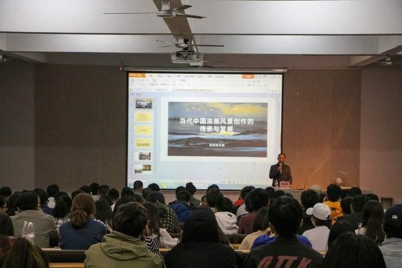 2018年4月8日晚上7:30于西校区伦理楼107,湖南大众传媒学院硕士生导师蔡国胜教授莅临我校名师大讲堂,给我校师生带来了一场题为《当代中国油画风景创作的传承与发展》的精彩讲座。广大师生现场聆听讲座。