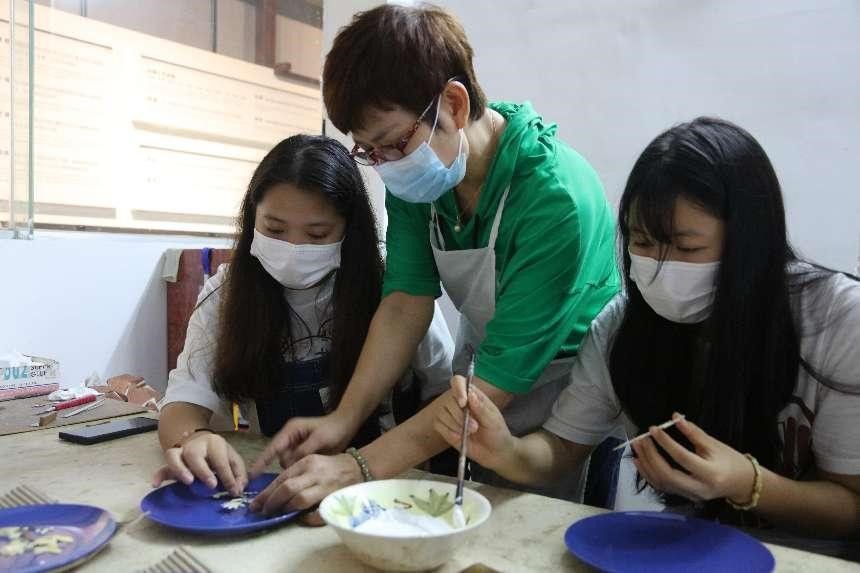 李艾玲老师为师生们讲解贝雕历史文化和作品背后的故事